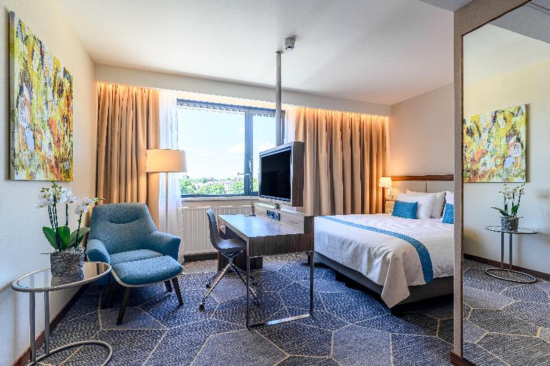 Elegante hotel en el centro de Maastricht con un moderno restaurante y wifi gratis. Situado a orillas del río Mosa, el lujoso hotel Crowne Plaza® Maastricht te coloca a 10 minutos a pie del centro histórico de Maastricht. Ofrecemos aparcamiento por una tarifa diaria, y la estación de tren de Maastricht está a 10 minutos a pie y el aeropuerto de Maastricht Aachen a 15 minutos en coche. Con nueve salas de reuniones flexibles, para recepciones de hasta 500 invitados, y una terraza junto al río, nuestro hotel bien equipado es la base ideal para el viajero corporativo exigente. Nuestro director de reuniones Crowne Plaza está disponible para ayudarte, y hay wifi gratis disponible en todo el hotel. Si asistes a una feria comercial, MECC Maastricht está a ocho minutos en coche. Las boutiques de alta gama se alinean en Hoogbrugstraat y Rechtstraat, a la vuelta de la esquina del hotel.
