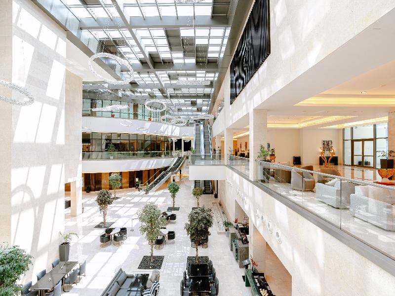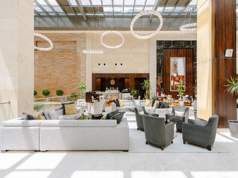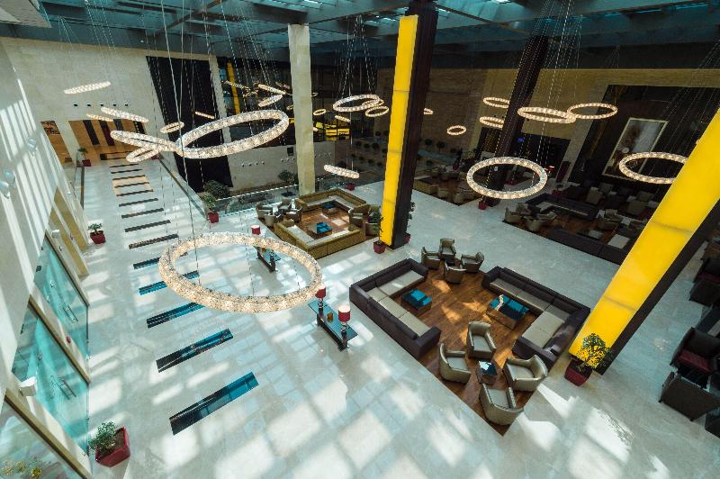 Una fusión de elegancia atemporal y tecnología de vanguardia, el lujoso Crowne Plaza Riyadh RDC Hotel & Convention en Arabia Saudí es el hotel perfecto para estancias cortas o largas en Riad. Ubicado en el corazón de la dinámica Digital City de Riad, el hotel refleja la cultura y la innovación de la ciudad. Con el aeropuerto internacional King Khalid y las principales atracciones turísticas a menos de 30 minutos en coche, los huéspedes pueden viajar hacia y desde el hotel sin esfuerzo. También hay aparcamiento gratuito en las instalaciones. Ya sea una oficina lejos de casa o un evento empresarial de alto nivel, los huéspedes pueden esperar un servicio ejemplar y altos estándares de confort. El hotel, con su piscina, spa y gimnasio, te permite mantenerte saludable y concentrado durante tu viaje. La experiencia culinaria del hotel representa una muestra de la cocina global. Durante tu estancia, descubre la alta cocina peruano-japonesa en KOI, degusta la comida brasileña en Wildfire y la cocina local e internacional en Mosaique.