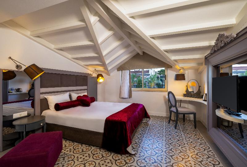 Un paraíso para parejas y familias con niños, este gran complejo hotelero consta de modernos edificios y cuidados jardines bordeados de altas palmeras, todo a solo cinco minutos a pie de Kemer. Se puede llegar al aeropuerto de Antalya en una hora en coche. El hotel cuenta con una playa privada de 180 metros, además de una variedad de piscinas y un parque acuático. El transporte público pasa frente al hotel, lo que facilita el acceso a Kemer, y los huéspedes podrán llegar a lugares de interés como el casco antiguo y el puerto de Antalya en menos de una hora en coche. Las elegantes habitaciones del hotel presentan una decoración moderna con suelos de parqué laminado o moqueta, baño privado, televisores LCD con canales vía satélite y conexión inalámbrica a internet gratuita. Los huéspedes pueden elegir entre siete bares y cuatro restaurantes especializados en mariscos, cocina italiana y turca, y pasar cálidos y soleados días relajándose junto a una de las piscinas o disfrutando del programa de entretenimiento.