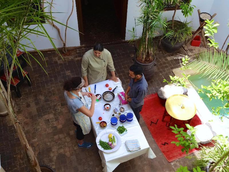 Is located in a residential neighbourhood just 10 min north of the main square, ideally situated for exploring the ancient medina. Tucked away at the end of a peaceful lane, crossing the threshold is like entering another world- of peace and serenity. It's within easy walking distance of many of the main attractions, and there are also excellent restaurants within 5 min walk.