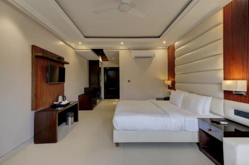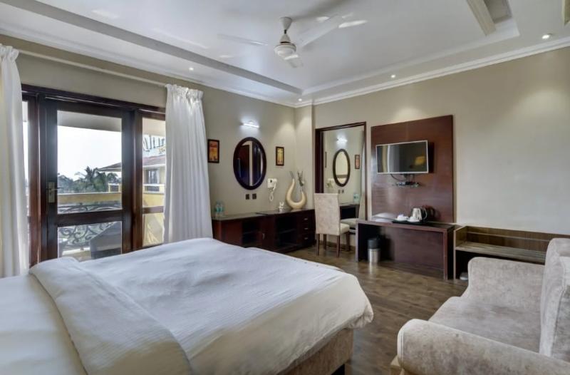 Este lujoso resort se encuentra a tan solo 100 metros de la playa de Candolim en Goa. Está ubicado a solo 4 km de la popular playa de Calangute y muy cerca de las principales atracciones de la zona. Podrás disfrutar de una amplia gama de emocionantes actividades en los alrededores. Este encantador resort te da la bienvenida a un ambiente de lujo inigualable. Con un estilo arquitectónico sofisticado, el hotel te invita a disfrutar de sus lujosos interiores. Las habitaciones están exquisitamente diseñadas con tonos naturales y toques de colores vivos y suaves que reflejan la belleza natural del entorno. Este magnífico resort no te decepcionará, ofreciéndote instalaciones de primera clase para garantizarte una estancia confortable.