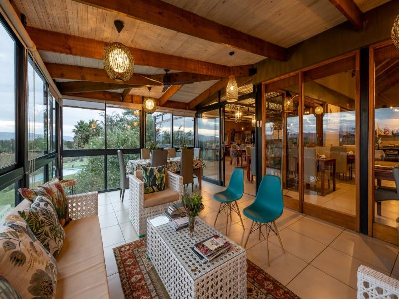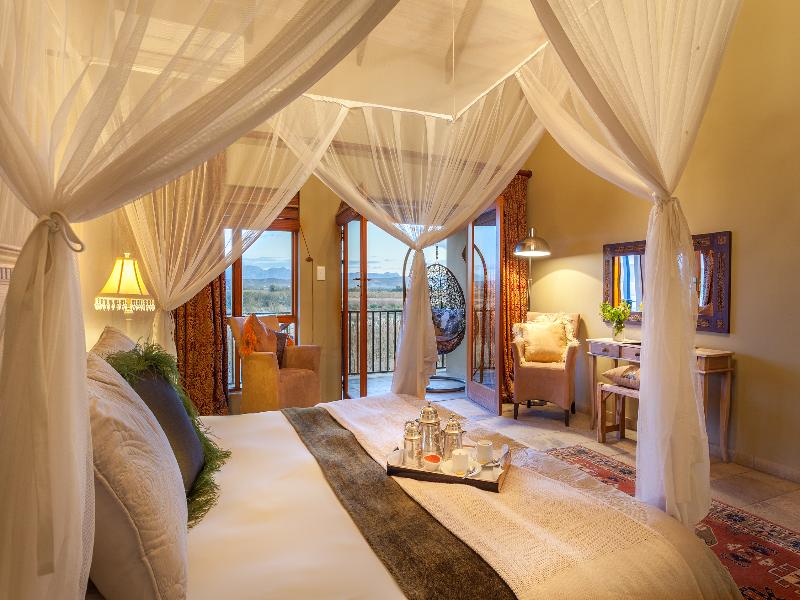 Enclavado en el distrito de Klein Karoo, en la Ruta Jardín de Sudáfrica, a solo 7 km de Oudtshoorn, este alojamiento único se encuentra en una granja de alfalfa en funcionamiento de 2500 hectáreas. Rodeado de atracciones como granjas de avestruces, las Cuevas Cango y la famosa ruta del vino, ofrece algo para todos los gustos. Ya sea que busques relajación o aventura, puedes disfrutar de una gran variedad de actividades, como excursiones para observar suricatas salvajes, pesca, piragüismo, observación de aves, ciclismo, observación de estrellas, masajes y nadar en la piscina de agua salada. El restaurante del hotel cuenta con una terraza abierta con impresionantes vistas, que sirve platos orgánicos y delicias locales complementados con vinos de la bodega. Las lujosas habitaciones de la casa principal y las cabañas privadas con su propia piscina a 3 km de distancia ofrecen una variedad de opciones de alojamiento.