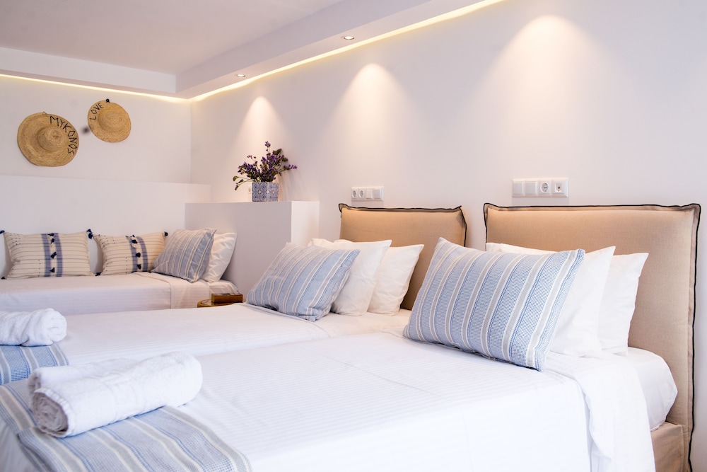 Si decides alojarte en Dimele Rooms & Studios de Míkonos, estarás junto al mar y a menos de cinco minutos en coche de Puerto antiguo de Mikonos y Playa de Ornos. Además, esta casa de huéspedes se encuentra a 0,4 km de Molinos de Míkonos y a 5 km de Playa Paradise.Con una terraza y jardín donde descansar y comodidades como conexión a Internet wifi gratis, ¡no te faltará de nada! Se ofrece además servicios de conserjería y servicio de canguro (de pago).Tendrás tintorería o lavandería, consigna de equipaje y una lavandería a tu disposición. Se ofrece un servicio de transporte desde el aeropuerto hasta el hotel gratuito (disponible las 24 horas) y servicio de transporte al punto de embarque del ferri también gratuito.Te sentirás como en tu propia casa en cualquiera de las 7 habitaciones con frigorífico y televisión de pantalla plana. La conexión a Internet wifi gratis te mantendrá en contacto con los tuyos; también podrás ver tu programa favorito en el televisor con canales digitales. El baño privado con ducha está provisto de artículos de higiene personal gratuitos y secadores de pelo. Entre las comodidades, se incluyen caja fuerte y cafetera y tetera, además de un servicio de limpieza disponible todos los días.