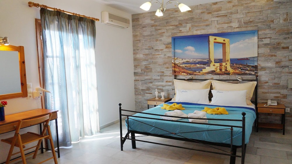 Si decides alojarte en Dimitra de Naxos, estarás cerca de la playa, a pocos pasos de Playa de Agios Prokopios y a apenas 4 min a pie de Playa de Agia Anna. Además, este hotel se encuentra a 2,1 km de Playa de Plaka y a 3,6 km de Playa de Agios Georgios.Con una piscina al aire libre de temporada y muchas otras instalaciones recreativas a tu disposición, no te quedará ni un minuto libre. Tienes también una terraza y jardín donde sentarte a contemplar el paisaje. Se ofrece además conexión a Internet wifi gratis, una televisión en la zona común y asistencia turística (adquisición de entradas).Tendrás tintorería o lavandería, consigna de equipaje y una lavandería a tu disposición. Se ofrece servicio de transporte al aeropuerto (ida y vuelta) de pago (disponible las 24 horas).Aprovecha el servicio de habitaciones con horario limitado de este hotel, o compra algo para comer en su snack-bar o delicatessen. Pon la guinda en el pastel a un día fantástico con una bebida en el bar o lounge o en el bar junto a la piscina. Se ofrece un desayuno bufé todos los días de 8:00 a 10:30 con un coste adicional.Te sentirás como en tu propia casa en cualquiera de las 14 habitaciones con aire acondicionado y televisión LED. Las habitaciones disponen de balcón. La conexión a Internet wifi gratis te mantendrá en contacto con los tuyos; también podrás ver tu programa favorito en el televisor con canales por cable. El baño privado con ducha está provisto de artículos de higiene personal gratuitos y secadores de pelo.