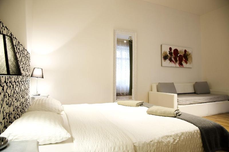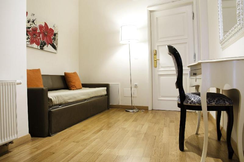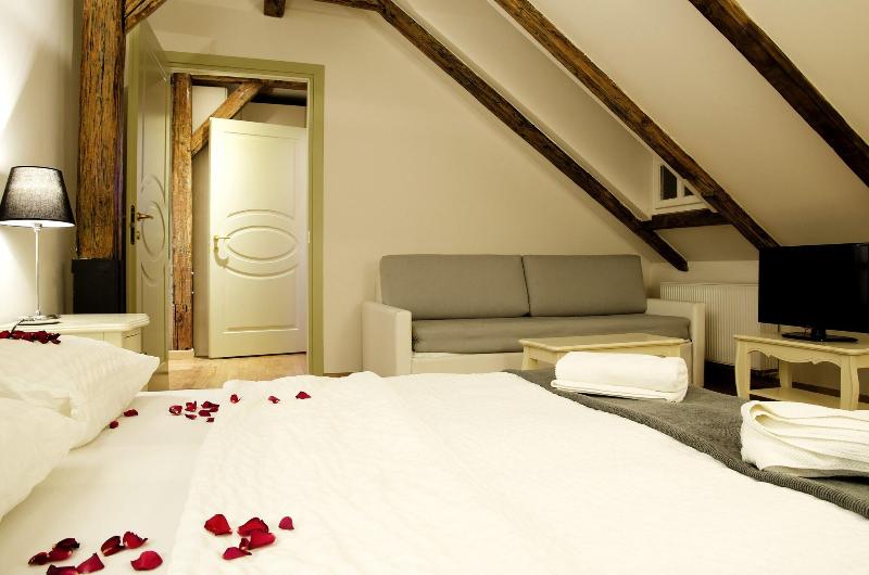 Nuestro hotel está situado en un edificio histórico que data de 1300, Bellas Artes Patrimonio de Praga. Completamente renovado en 2013, ofrece una experiencia única que mezcla la historia de Praga con el estilo y la decoración italiana. También dotado con las últimas comodidades, es un hotel joven en un lugar lleno de historia. Cada habitación cuenta con una sala de estar, que incluye un cómodo sofá o longe chaisse donde se puede disfrutar de su música favorita debido a una conexión directa entre la televisión inteligente y su iPhone, iPad o portátil; ver la televisión por satélite o consultar su correo electrónico gracias a la conexión Wi-Fi gratuita. Amplias habitaciones con ventanas y un cuarto de baño, completamente equipadas. Esas habitaciones con son más lujosas están equipadas con bañera de hidromasaje y con preciosas vistas a los tejados románticas y cúpulas de Praga.