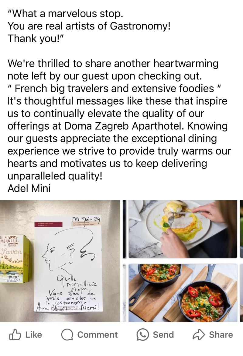 Doma Zagreb es un apartotel de 4 estrellas ubicado en el corazón de la impresionante capital de Croacia, Zagreb, y ofrece el lugar perfecto para explorar la vibrante cultura, el encanto histórico y las atracciones locales de la ciudad. Ubicado en un edificio del siglo XIX bellamente restaurado en el centro de la ciudad, nuestra propiedad combina una arquitectura atemporal con un estilo contemporáneo discreto. Comienza tu día con el mejor desayuno de la ciudad: lo llamamos la 'Breakfasting Experience'. Disfruta de una cuidada selección de delicias locales e internacionales diseñadas para darte energía durante todo el día. En Doma Zagreb, atendemos a los viajeros modernos con comodidades bien pensadas, que incluyen wifi gratis, Netflix en Smart TVs, puertos USB y más. Muchos de nuestros tipos de habitaciones cuentan con cocinas pequeñas, café y té de cortesía, y todo lo esencial para una estancia acogedora y funcional.