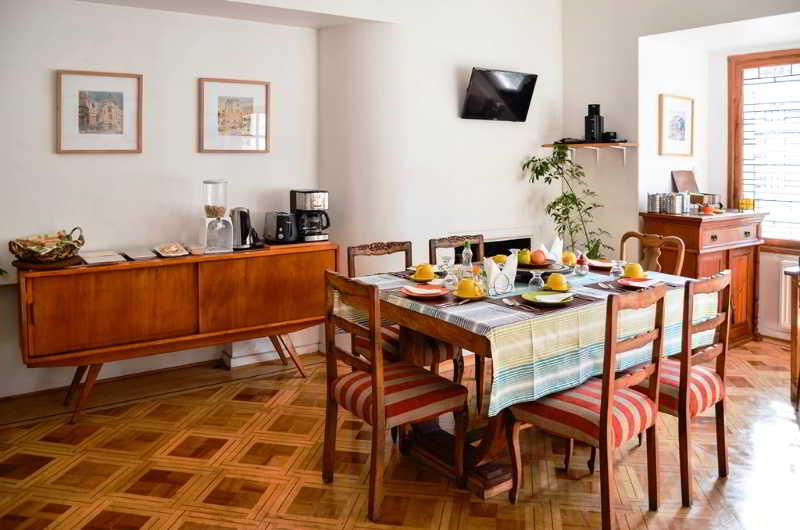 Es una casa luminosa, con espacios amplios y muy acogedora, a pasos del metro Pedro de Valdivia, muy cerca de centros comerciales, bancos y otros lugares de interés. El hotel ofrece algunas ventanas originales de la casa con mosaicos hechos a mano. Los huéspedes pueden apreciar un trabajo que actualmente es muy difícil de encontrar. Se muestran objetos típicos chilenos en el hall y las habitaciones. Los cuadros en las habitaciones representan lugares típicos de Chile. En el comedor y la escalera al segundo piso se exhiben acuarelas de lugares típicos de Santiago. También se intenta imprimir un aspecto casi olvidado de la ciudad: los cerros y los hermosos lugares de la región. |