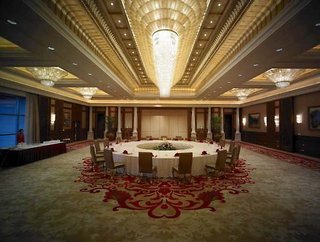 El hotel es el más grande de estilo jardín de Shanghái, ocupa un terreno de 485 hectáreas y el 80% de éste es una zona verde. El terreno se divide en tres partes con dos centros. La zona del edificio principal es donde se recibe a importantes personalidades como pueden ser presidentes y líderes de otros países. El salón de reuniones está pensado principalmente para huéspedes de alto perfil. La sala es enorme, 420 m², y su interior es puro lujo acompañado del mejor equipamiento audiovisual. Se trata de un hotel urbano climatizado de 370 habitaciones, que dispone de servicio de salida y recepción 24 horas, caja fuerte, servicio de cambio de divisas, ascensor, quiosco de prensa y salón de peluquería, así como cafetería, bar, restaurante, servicio de habitaciones y de lavandería, aparcamiento y garaje.