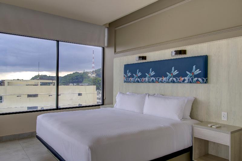 Nos encontramos en la zona centro-norte de Guayaquil, justo frente al icónico Malecón 2000. Estamos a dos cuadras de Las Peñas, El Museo Del Cacao y el Museo Antropológico y de Arte Contemporáneo, lo que te facilita ir de compras y hacer turismo. Disfruta de impresionantes vistas del Río Guayas desde nuestro bar en la azotea y nuestra piscina infinita al aire libre. https://storage. googleapis. com/tours. 360ecuador. com/DoubleTreeByHiltonGye/index. htm