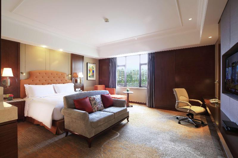 Los siguientes servicios y comodidades no están disponibles actualmente: Refrigerio social de cortesía por la tarde. Bienvenido al DoubleTree by Hilton Hotel Ningbo - Chunxiao. Este nuevo hotel en el distrito de Beilun está cerca del Museo Portuario de China y a 55 kilómetros del Aeropuerto Internacional de Ningbo Lishe. Disfruta de la elegante decoración y el servicio exclusivo, comenzando con una cálida galleta con chispas de chocolate al registrarte. Cada espaciosa habitación cuenta con wifi, TV de pantalla plana y minirrefrigerador. Contempla la ciudad o el mar desde tu balcón privado. Mejora tu experiencia a una habitación ejecutiva para acceder al salón ejecutivo con desayuno y cócteles por la tarde de cortesía. La suite presidencial ofrece una sala de estar y dos dormitorios para una experiencia premium. Las comidas son memorables en nuestro hotel Chunxiao. Disfruta de especialidades chinas junto al exclusivo acuario en Jinyu. El bar de fideos Ra-Don sirve almuerzos y cenas en animadas mesas comunitarias. Saborea la cocina cantonesa y de Zhejiang y elige mariscos del acuario en la pared en Dahai. Reúnete con tus colegas en Beer Society para disfrutar de bebidas de cervecerías de todo el mundo. El servicio de habitaciones está disponible en cualquier momento. Después de un largo día, relájate en el baño de vapor o en la sauna, o nada en la reluciente piscina cubierta. Ejercítate con los equipos más modernos en el gimnasio abierto las 24 horas de cortesía. Este hotel de Zhejiang ofrece más de 740 metros cuadrados de impresionante espacio para eventos con capacidad para 500 invitados. Celebra tu boda en Ningbo en el Gran Salón de Baile sin columnas; nuestro personal puede ayudarte con los detalles. Organiza una sesión de formación en una de las 10 salas de reuniones y mantente conectado en el centro de negocios abierto las 24 horas.