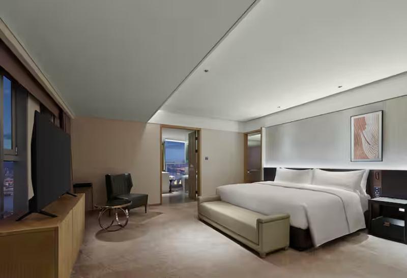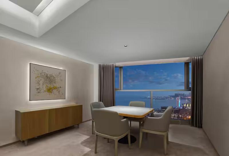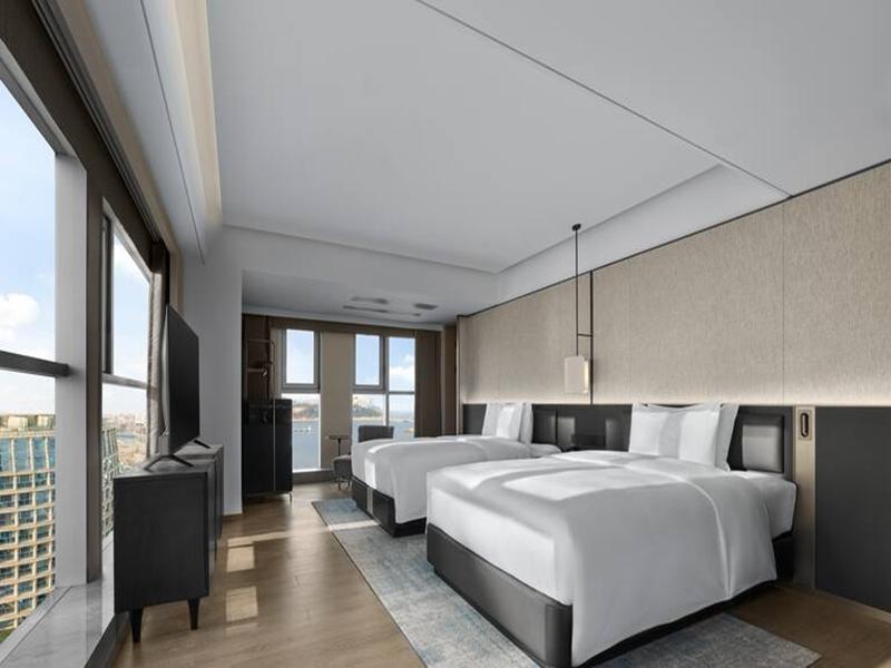 Nuestro hotel ofrece una gama de habitaciones, desde estándar hasta presidencial, la mayoría con impresionantes vistas al mar del piso al techo. Nuestro restaurante ofrece desayuno, almuerzo y cena tipo buffet con mariscos locales tradicionales. Estamos a tres minutos a pie del centro comercial Wego Plaza, a cinco minutos en coche de Weihai Huancui y junto a la Plaza de la Puerta de la Felicidad.