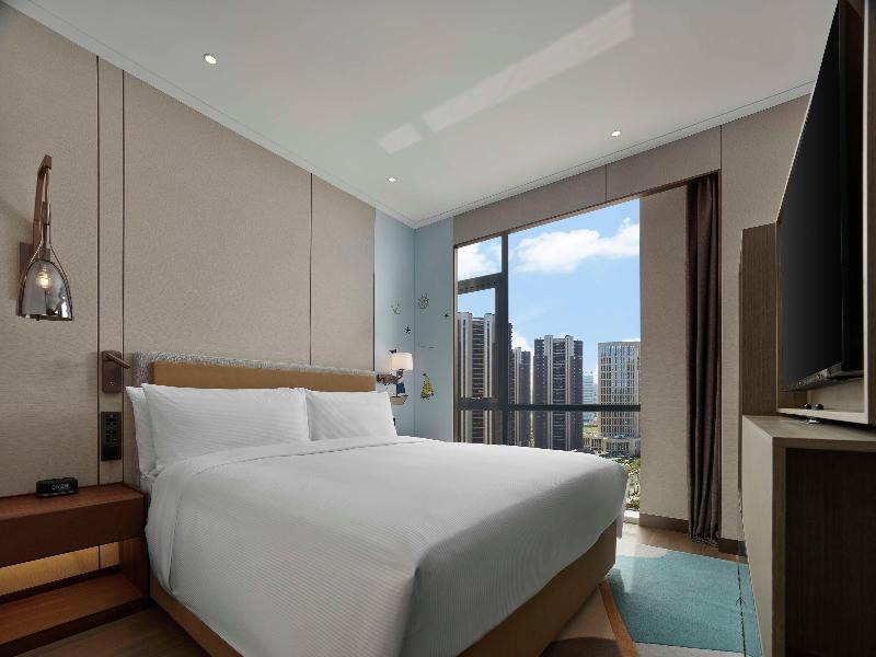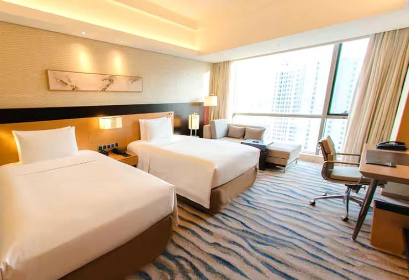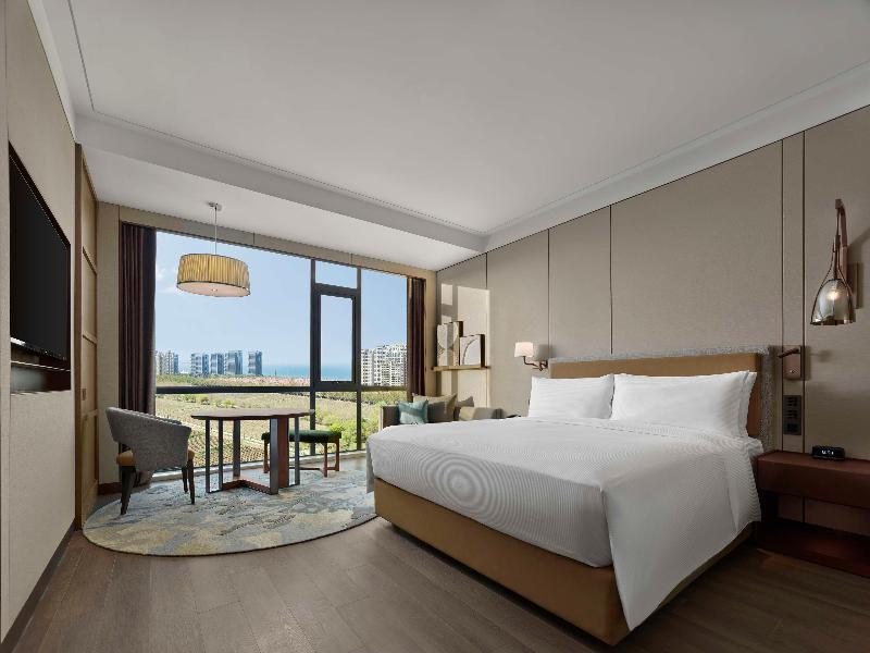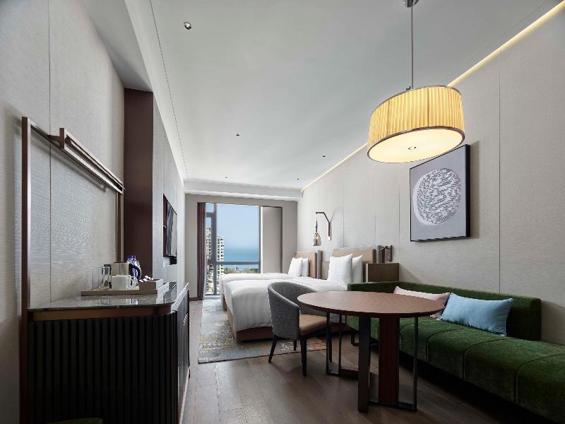 Ponemos a tu disposición un total de 252 habitaciones en el Doubletree By Hilton Yantai Golden Coast, completamente renovado en 2024. Disfruta de una estancia cómoda con vistas a la bahía de Taozi. Elevándose sobre los viñedos locales, nuestro hotel ofrece hermosas vistas al mar. Estamos a solo un kilómetro de Golden Beach, en la Zona de Desarrollo de Yantai. El Aeropuerto Internacional de Penglai está a 25 minutos y la estación de tren de Yantai, a 40 minutos. Nuestras suites cuentan con cocina americana y lavadora, ideales para una estancia prolongada y confortable.