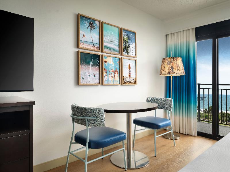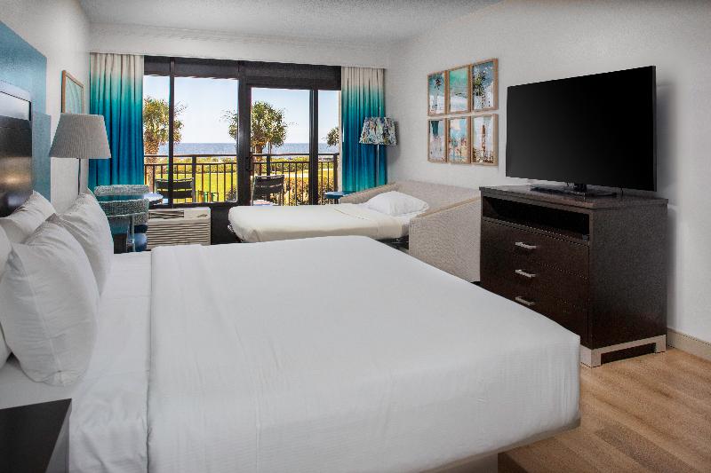 Disfruta de una escapada en el DoubleTree Resort by Hilton Hotel Myrtle Beach Oceanfront. Situado en 27 acres en el extremo sur de Ocean Boulevard, este resort frente al mar ofrece hermosas playas privadas y una gran cantidad de actividades, junto al Myrtle Beach State Park. Comienza tus vacaciones con una galleta DoubleTree de chispas de chocolate a tu llegada. Las habitaciones cuentan con balcones privados con vista al mar, wifi gratuito, TV HD de 40 pulgadas, minirrefrigerador, microondas y cafetera. Las suites de un dormitorio con una cama tamaño king o dos camas tamaño queen y una sala de estar independiente con sofá cama son ideales para familias. También hay disponibles habitaciones accesibles y que admiten mascotas con pisos de baldosas. El resort está convenientemente ubicado cerca del Myrtle Beach International Airport y del Market Common District, ambos a menos de medio kilómetro. Observa los aviones despegar sobre el océano. Las comodidades incluyen piscinas climatizadas al aire libre y bajo techo, y dos ríos lentos. Para eventos, el hotel ofrece 3250 metros cuadrados de espacio para reuniones, incluidos tres salones de baile, cada uno con capacidad para 500 invitados. Nuestros dedicados planificadores de eventos pueden ayudarte con fiestas y conferencias frente a la playa. El hotel ha actualizado sus políticas de reserva y cancelación y ha extendido los puntos y el estatus de Hilton Honors. Se requiere el uso de mascarillas en todas las áreas públicas interiores. Visita nuestra página de COVID-19 para obtener la información más reciente y consulta las pautas del gobierno local antes de viajar.