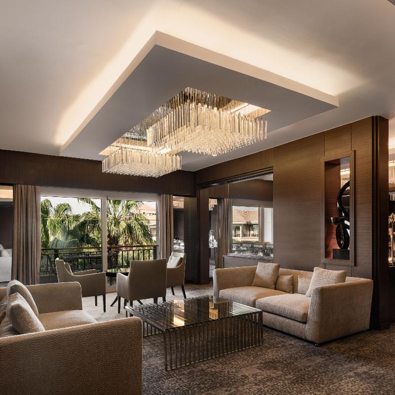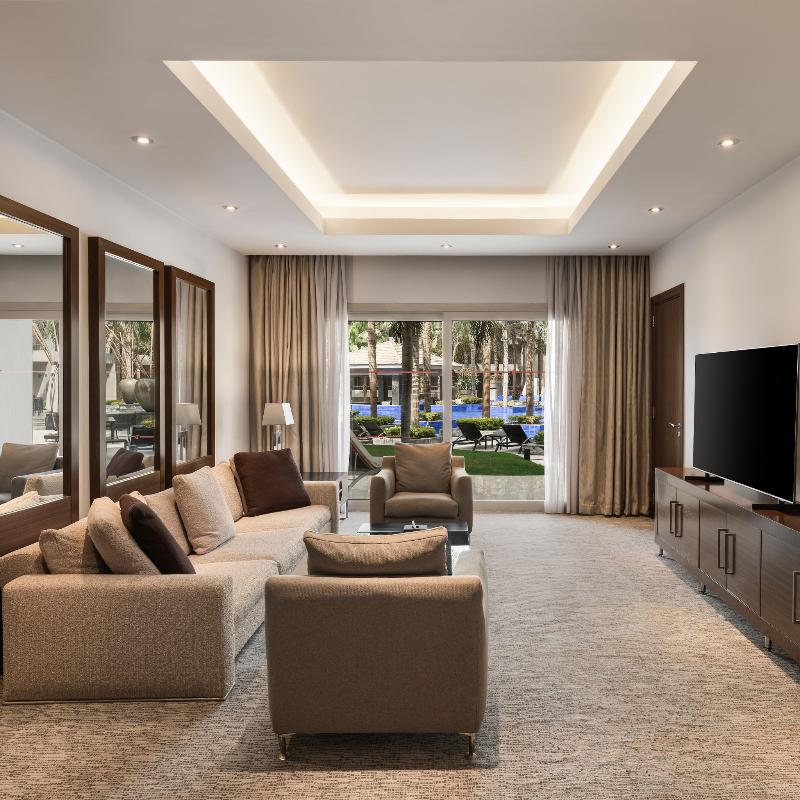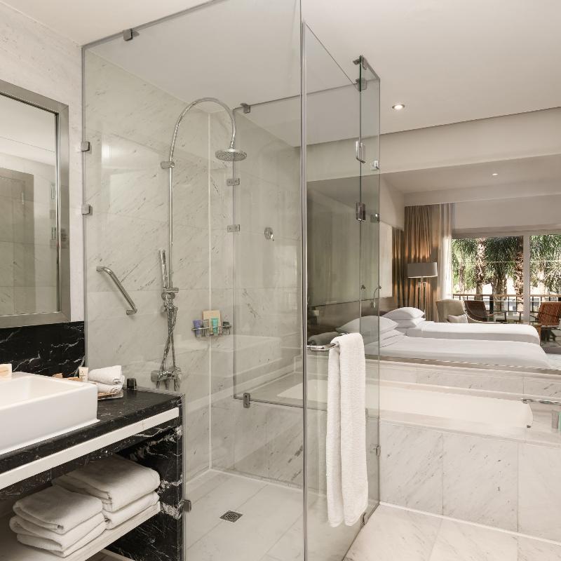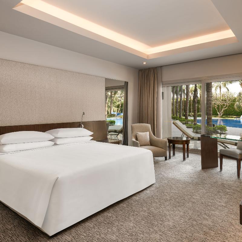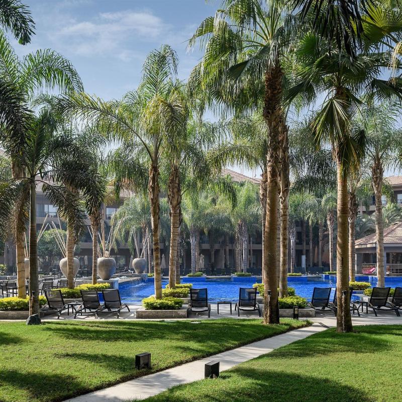 Ubicado en un exuberante entorno tipo resort en New Cairo, el Dusit Thani de 5 estrellas cuenta con cascadas, calles arboladas, lagos y un arroyo. Este lujoso hotel ofrece tres piscinas al aire libre, ocho restaurantes y bares, y traslados gratuitos al aeropuerto. Cada habitación incluye un televisor de pantalla plana con canales vía satélite, un minibar con refrescos gratuitos y un baño privado con albornoces, zapatillas y artículos de aseo gratuitos. Algunas habitaciones también ofrecen una zona de estar. Los huéspedes pueden disfrutar de una amplia selección de instalaciones de fitness, spa y natación, incluido el spa Devarana Thai. El hotel también cuenta con 23 salones para eventos, un centro de negocios, tres salones de baile y diversas opciones gastronómicas que van desde cocina asiática y turca hasta un restaurante internacional abierto todo el día. The Bake Bar ofrece brunch durante todo el día, mientras que el lounge y la terraza del vestíbulo sirven delicias gourmet las 24 horas, los 7 días de la semana. El Aeropuerto Internacional de Cairo y las principales atracciones son fácilmente accesibles desde el hotel. Para consultar la política de limpieza del establecimiento, visita la página del Dusit Thani en Preferredhotels. com.