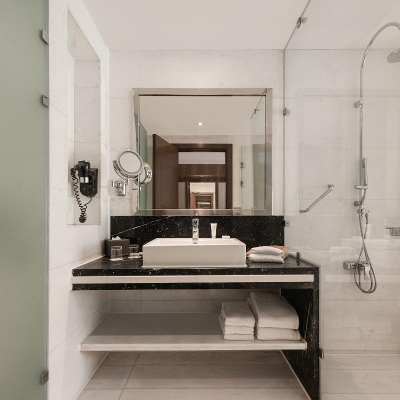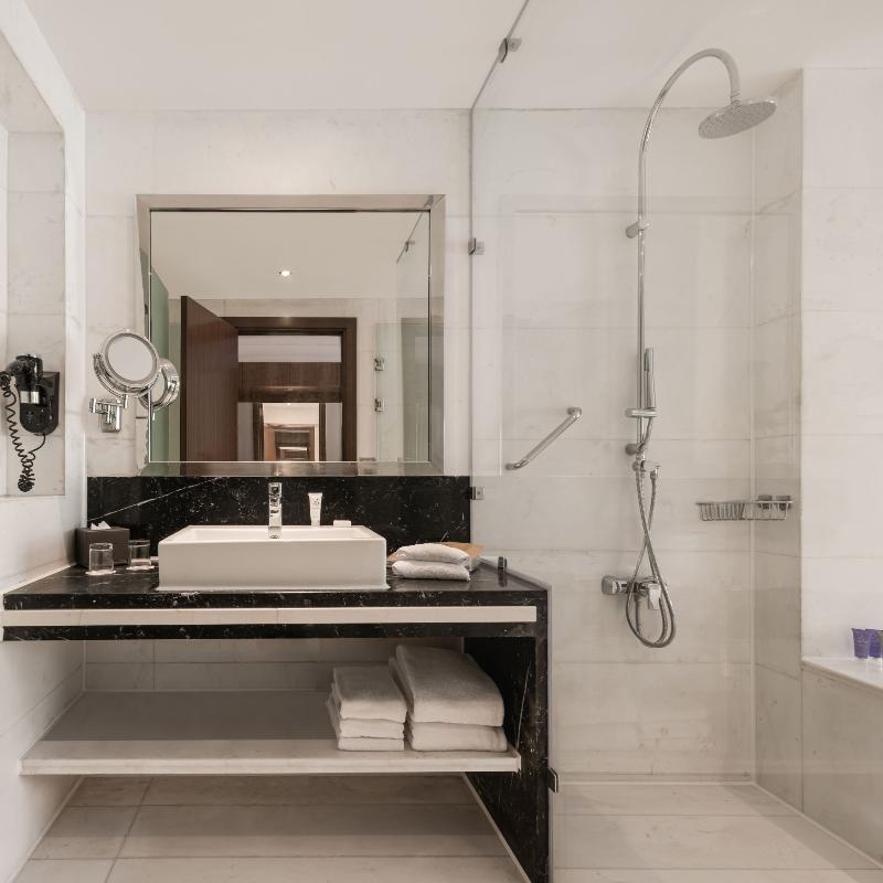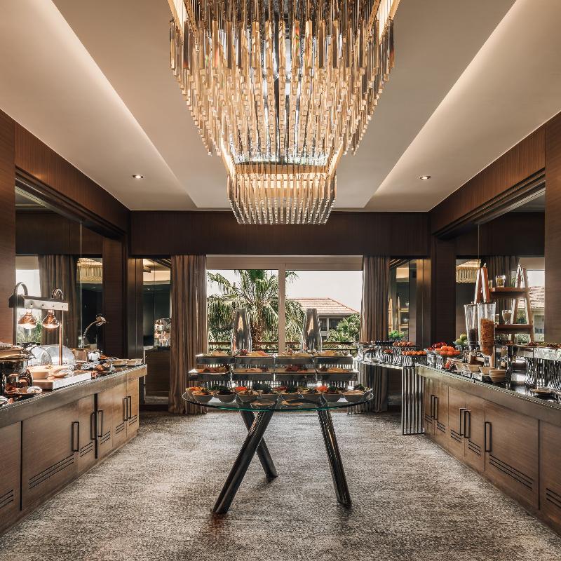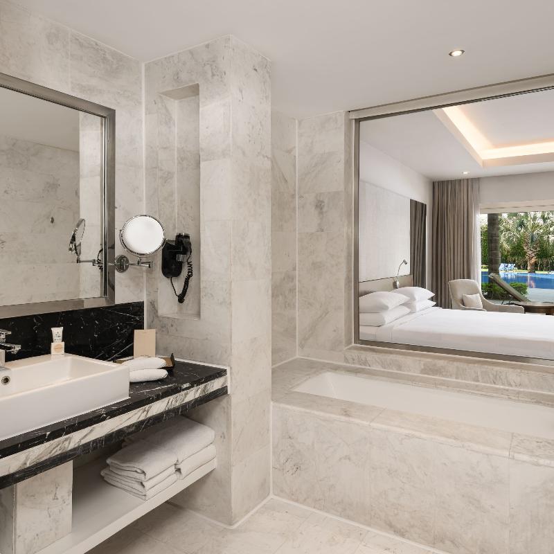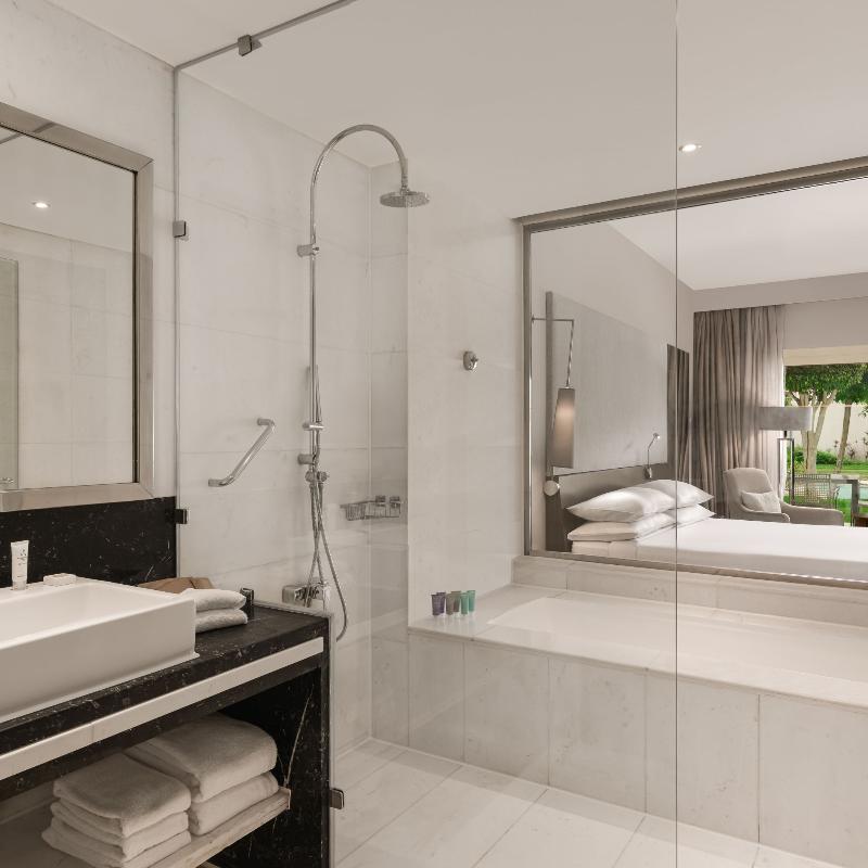 Ubicado en un exuberante entorno tipo resort en New Cairo, el Dusit Thani de 5 estrellas cuenta con cascadas, calles arboladas, lagos y un arroyo. Este lujoso hotel ofrece tres piscinas al aire libre, ocho restaurantes y bares, y traslados gratuitos al aeropuerto. Cada habitación incluye un televisor de pantalla plana con canales vía satélite, un minibar con refrescos gratuitos y un baño privado con albornoces, zapatillas y artículos de aseo gratuitos. Algunas habitaciones también ofrecen una zona de estar. Los huéspedes pueden disfrutar de una amplia selección de instalaciones de fitness, spa y natación, incluido el spa Devarana Thai. El hotel también cuenta con 23 salones para eventos, un centro de negocios, tres salones de baile y diversas opciones gastronómicas que van desde cocina asiática y turca hasta un restaurante internacional abierto todo el día. The Bake Bar ofrece brunch durante todo el día, mientras que el lounge y la terraza del vestíbulo sirven delicias gourmet las 24 horas, los 7 días de la semana. El Aeropuerto Internacional de Cairo y las principales atracciones son fácilmente accesibles desde el hotel. Para consultar la política de limpieza del establecimiento, visita la página del Dusit Thani en Preferredhotels. com.