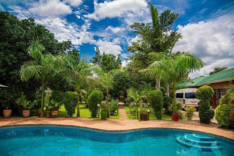 Ubicado en Victoria Falls, Dzimbahwe Guest Lodge se encuentra a 15 minutos en coche de Victoria Falls y del Parque Nacional de Victoria Falls. Este hostal está a 2, 1 km del Parque Nacional Zambezi y a 5, 2 km de Devil's Pool. Disfruta de las vistas desde la terraza y el jardín y aprovecha servicios como el acceso inalámbrico a Internet gratuito. Entre los servicios adicionales de este hostal se incluyen servicios de conserjería, una televisión en la zona común y un área de pícnic. Tendrás a tu disposición recepción 24 horas y consigna de equipaje. Se ofrece servicio de transporte al aeropuerto (ida y vuelta) de pago. Sacia tu sed con tu bebida favorita en el bar o lounge. Se sirve un desayuno completo todos los días de 7:00 a 9:00 con un coste adicional. Te sentirás como en casa en una de las 6 habitaciones con aire acondicionado y televisión de plasma. La conexión a Internet wifi gratis te mantendrá en contacto con los tuyos; también podrás ver tu programa favorito en la televisión con canales por satélite. El cuarto de baño está provisto de bañera o ducha, artículos de higiene personal gratuitos y secadores de pelo. Entre las comodidades, se incluyen caja fuerte y ventilador de techo, además de un servicio de limpieza disponible todos los días.