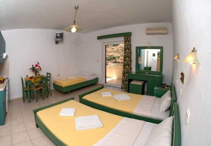Estos apartamentos tipo estudio se encuentran en Bali, un tranquilo y pintoresco poblado en una apacible bahía. Los visitantes disfrutarán de las bonitas playas y del mar, así como de las tabernas tradicionales, conocidas por su cocina griega y por su célebre hospitalidad tradicional. Están a 150 m de la playa de Varkotopos y de los bares y restaurantes más cercanos. Hay lugares para salir por la noche a 300 m, mientras que el centro de la localidad, las tiendas y el puerto de Bali distan 500 m. La carretera nacional queda a solo 2 km y hay 4 km hasta el monasterio de Agios Ioannis. El alojamiento se sitúa en la parte central de la Creta septentrional, entre Heraclión (a 40 minutos) y Rétino (a 30 minutos). El aeropuerto de Heraclión dista aproximadamente 54 km.||Este apartotel cuenta con un total de 28 habitaciones, entre ellos 15 estudios. Tiene alojamientos en la planta baja, así como en la primera y en la segunda, que gozan además de vistas del mar y las montañas. Otras instalaciones a disposición de los huéspedes en este establecimiento climatizado incluyen vestíbulo, caja fuerte, servicio de cambio de divisas y quiosco de prensa. Hay una sala de TV, cafetería, bar y restaurante. Los huéspedes apreciarán la sala de desayunos y el aparcamiento.||Todos los alojamientos vienen con cuarto de baño privado con ducha y ofrecen cama doble. Además, están equipados con teléfono de línea directa, TV vía satélite/por cable y caja fuerte. También vienen con una cocina pequeña con nevera y cafetera/tetera. Asimismo, los alojamientos cuentan con aire acondicionado y calefacción regulables, como equipamiento estándar. También vienen con balcón o terraza.