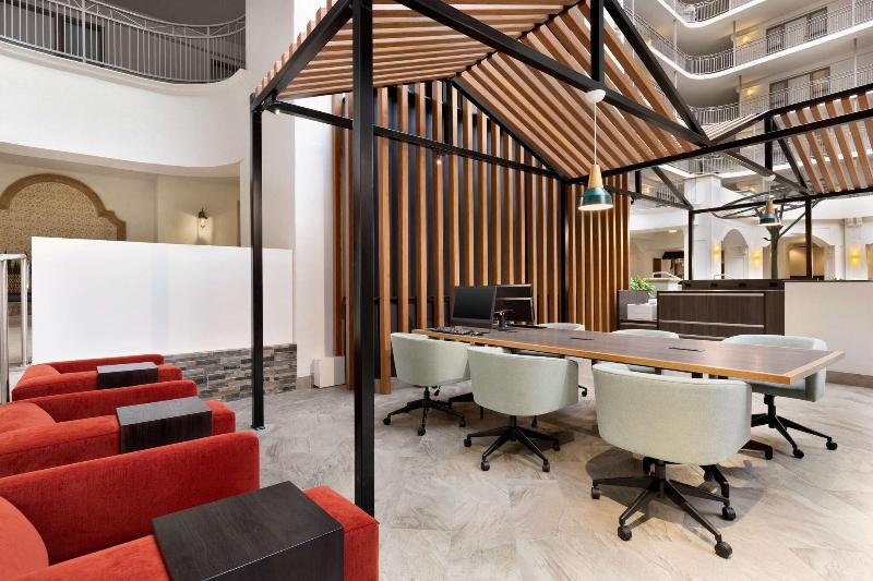 Relájate con estilo en el Embassy Suites Dallas - DFW International Airport South, un hotel de suites ideal para viajeros de negocios y de placer. Ubicado a solo minutos del Aeropuerto DFW, este hotel de estilo mediterráneo cuenta con un impresionante atrio ajardinado tropical de 10 pisos con una cascada y peces exóticos. Cada espaciosa suite ofrece las comodidades del hogar, incluyendo un refrigerador, un minibar, dos televisores, una mesa de comedor/trabajo y acceso a internet de alta velocidad. Comienza tu día con un desayuno a la carta gratuito en el Atrium Cafe y relájate con bebidas de cortesía en nuestra Recepción del Gerente nocturna. Disfruta de fácil acceso a las atracciones de Dallas, incluyendo el Rangers Ballpark, el Zoológico de Dallas y Six Flags Over Texas. El hotel también está convenientemente ubicado cerca de negocios locales, lo que lo convierte en una excelente opción para viajeros corporativos.