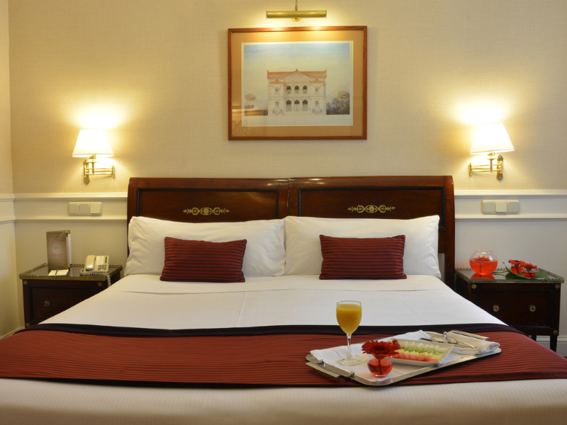 El hotel fue renovado en el 2006, está climatizado y cuenta con 232 habitaciones repartidas por 9 plantas, de las que 155 son dobles, 24 individuales, 16 suites Júnior y 2 suites. Además, dispone de instalaciones como peluquería, bar, restaurante, azotea con piscina (abierta según la estación), conexión a Internet, servicio de vigilancia las 24 horas, centro de negocios, servicio de lavandería, garaje y aparcamiento.