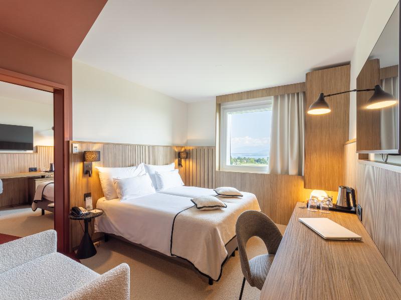 El Hotel Everness ofrece una escapada tranquila en un entorno verde, a solo 10 minutos de Ginebra. Disfruta de impresionantes vistas del lago y los Alpes. Aprovecha el restaurante, la piscina al aire libre, las pistas de pádel y tenis. Las habitaciones cuentan con TV de pantalla plana vía satélite, caja fuerte, minibar y escritorio. Déjate mimar por la experiencia 'Everness Wellness' en la cuarta planta, inspirada en conceptos escandinavos. Alterna entre terapias de calor y frío, incluyendo una sauna finlandesa, baño de vapor de eucalipto, tinas de madera calientes y frías al aire libre y una fuente de hielo, culminando en una profunda relajación junto a la chimenea. Ten en cuenta que la tasa turística no está incluida en el precio de la habitación y se abona directamente en el hotel.