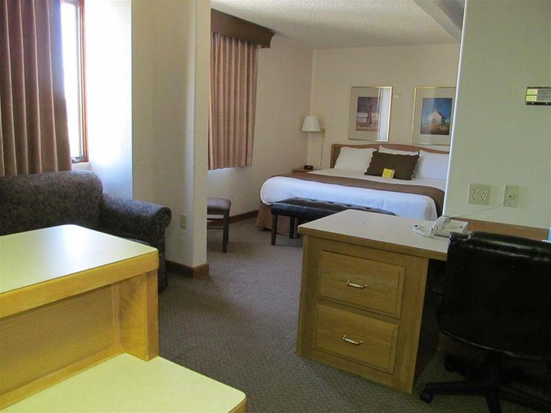 Ubicado en el corazón de Bismarck, este hotel ofrece una base ideal para viajeros, a solo dos minutos a pie del Kirkwood Mall. Comienza tu día con un desayuno caliente gratuito y aprovecha las instalaciones del hotel. La propiedad cuenta con una piscina exterior de temporada, un jacuzzi y un gimnasio. Un servicio de traslado gratuito al aeropuerto aumenta la comodidad. El hotel admite mascotas y ofrece wifi y estacionamiento gratuitos. Todas las habitaciones están equipadas con microondas y nevera. Las opciones de alojamiento incluyen habitaciones con camas tamaño king o queen, así como suites ejecutivas más espaciosas. Para explorar la zona, el Bismarck Event Center está a nueve minutos a pie y el Dakota Zoo a 13 minutos del hotel.