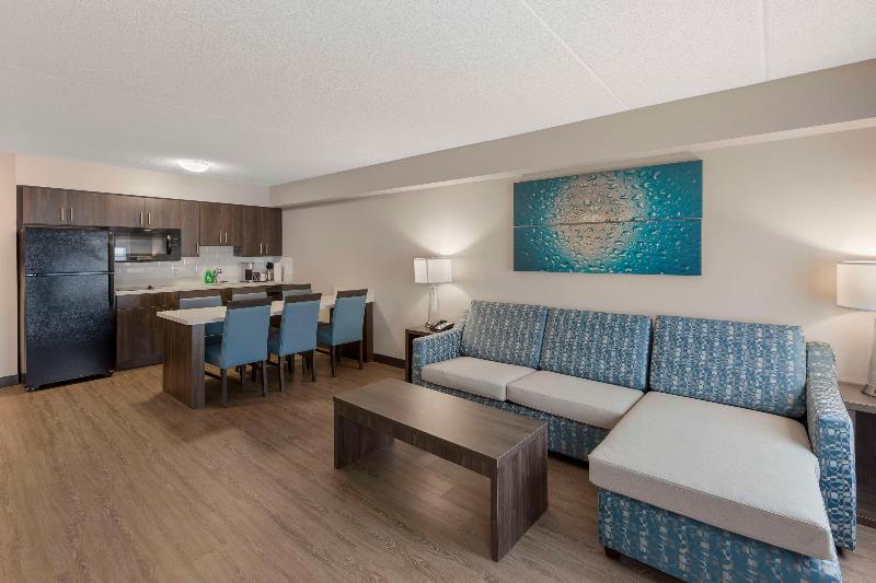 Bienvenido al Executive Residency by Best Western Toronto-Mississauga, idealmente ubicado en el corazón del distrito financiero de Mississauga. Nos encontramos cerca de las principales autopistas como la 401, 407, 410 y la QEW. A tan solo 12 minutos en coche del Aeropuerto Internacional Toronto Pearson (YYZ). Executive Residency by Best Western Toronto-Mississauga te ofrece cercanía al Paramount Fine Foods Center, al centro de Toronto, al CAA Center, al Mississauga Convention Center y al centro comercial Square One Mall. Estamos a pocos minutos en coche de importantes empresas como Oracle, Microsoft, Cognizant, LG, Purolator, Sysco, General Motors, Coca Cola, Amazon, DHL, Maple Leaf Foods y Xerox. Nuestras amplias suites están diseñadas exclusivamente para ofrecerte zonas dedicadas para dormir, comer, trabajar y relajarte. Asequibles y diseñadas para estancias prolongadas, cada suite cuenta con una cocina americana completamente equipada con nevera grande, lavavajillas, microondas, vitrocerámica de dos fuegos, utensilios de cocina y vajilla. Empieza el día con un delicioso desayuno caliente completo gratuito y termínalo con una bebida refrescante en nuestro bar. Conecta con la naturaleza en nuestro espacio al aire libre con patio, parrillas y zona de descanso. Mantén tu rutina de ejercicios en nuestro moderno gimnasio y piscina cubierta climatizada. Mantente conectado con nuestro internet de alta velocidad por cable e inalámbrico gratuito. Las cortinas opacas te garantizan un sueño reparador, y el televisor de 42 pulgadas te permitirá disfrutar de tus programas favoritos durante tu estancia en el hotel.