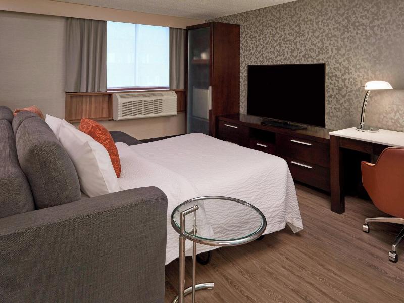 Ubicado en el corazón de Montreal, a pasos de la calle Sainte-Catherine y a poca distancia a pie del Viejo Montreal, el Fairfield by Marriott Montreal Downtown ofrece un cómodo acceso a las principales atracciones de la ciudad. Este hotel cuenta con un gimnasio abierto las 24 horas, wifi gratuito y desayuno buffet gratuito todos los días. Cada una de las 154 habitaciones incluye nevera, Smart TV y baño privado con ducha, artículos de aseo gratuitos y secador de pelo. Para los viajeros de negocios, hay disponibles un centro de negocios abierto las 24 horas, registro de entrada y salida exprés. También se ofrece aparcamiento propio (de pago).