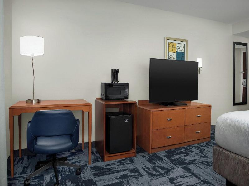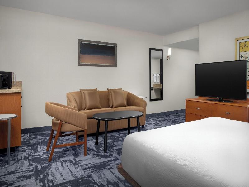 Ubicado en el barrio Victory Hills de Albuquerque, el Fairfield Inn & Suites by Marriott Albuquerque Airport está a poca distancia en coche de varias atracciones clave. Disfruta de una ronda de golf en Puerto Del Sol Golf Course, ve un partido en Isotopes Park o explora la University of New Mexico, todo a pocos kilómetros. El hotel cuenta con un gimnasio abierto las 24 horas y una piscina exterior de temporada. Manténte conectado con wifi gratuito y relájate en la zona común. Cada una de las 118 habitaciones con aire acondicionado ofrece Smart TV, programación por cable y un baño parcialmente abierto con artículos de aseo gratuitos. Empieza el día con el desayuno bufé gratuito y disfruta de una comida en el Applebee's del hotel o en el bar. Los servicios adicionales incluyen un centro de negocios abierto las 24 horas, registro de entrada exprés, servicio de tintorería y un servicio de transporte gratuito al aeropuerto (disponible bajo petición).