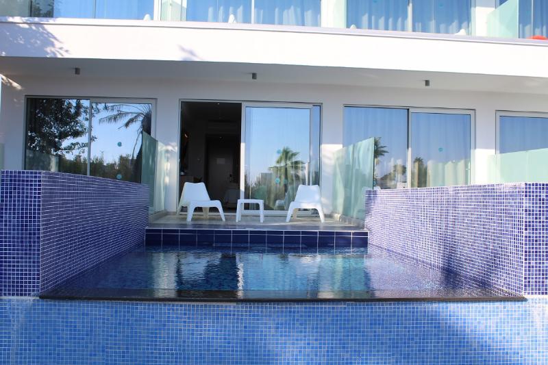 Fedrania Gardens es un hotel de 2 estrellas ubicado en una tranquila zona verde de Ayia Napa. Renovado en 2015, el hotel está convenientemente situado a solo 800 metros de la playa y a 1, 5 kilómetros del centro de Ayia Napa, con fácil acceso a restaurantes, pubs y tiendas. Cuenta con dos grandes piscinas, dos piscinas infantiles y un jacuzzi al aire libre, todos junto a una espaciosa terraza y jardines. El hotel consta de dos secciones. El edificio principal alberga 22 habitaciones dobles y 31 habitaciones de un dormitorio, todas renovadas en 2015. Una sección más nueva, construida en 2018, ofrece 10 Junior Suites con piscinas privadas, 22 habitaciones Family Swim-Up y 35 habitaciones Superior con vistas al interior o a la piscina.