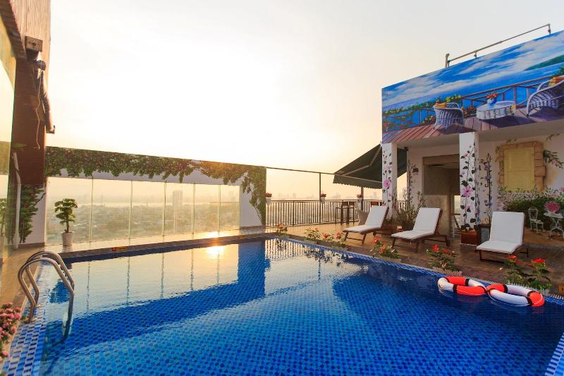 El FIVITEL King Hotel ofrece una refrescante piscina al aire libre y un gimnasio completamente equipado para tu recreación. Manténte conectado con el wifi gratuito y disfruta de la comodidad de los servicios de conserjería y las tiendas de regalos dentro del hotel. Un servicio de traslado gratuito a la playa te facilita la llegada a las costas arenosas de My Khe Beach. Saborea deliciosas comidas en el restaurante, disfruta de refrigerios en la cafetería o relájate con una bebida en el bar/salón o en el bar junto a la piscina. Cada una de las 115 habitaciones, decoradas individualmente, cuenta con minibar, televisor LCD y una cama Select Comfort. Los baños privados incluyen artículos de tocador de diseño y secador de pelo. Para los viajeros de negocios, hay un centro de negocios y salas de reuniones disponibles. El hotel está convenientemente ubicado cerca de My Khe Beach y Bac My An Beach, con fácil acceso a atracciones populares como el río Han y el Dragon Bridge. Hay un servicio de traslado de ida y vuelta al aeropuerto y a la terminal de cruceros disponible por un suplemento.