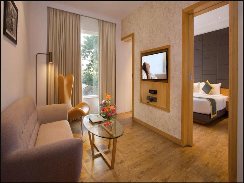 Ubicado en el vibrante distrito JP Nagar de Bangalore, el Hotel Fountain Tree by TGI ofrece un cómodo acceso a las atracciones locales y al transporte. En las cercanías, encontrarás centros comerciales, negocios, centros tecnológicos y tiendas. Priorizamos la hospitalidad y un servicio de calidad, brindando una experiencia de lujo con inspiración alpina. Nuestra gama de alojamientos bien equipados incluye suites, habitaciones premium y habitaciones ejecutivas, cada una ofreciendo confort y estilo con una decoración elegante, amplios espacios y vistas a la ciudad. Disfruta de comodidades como wifi, servicio de habitaciones y desayuno de cortesía.