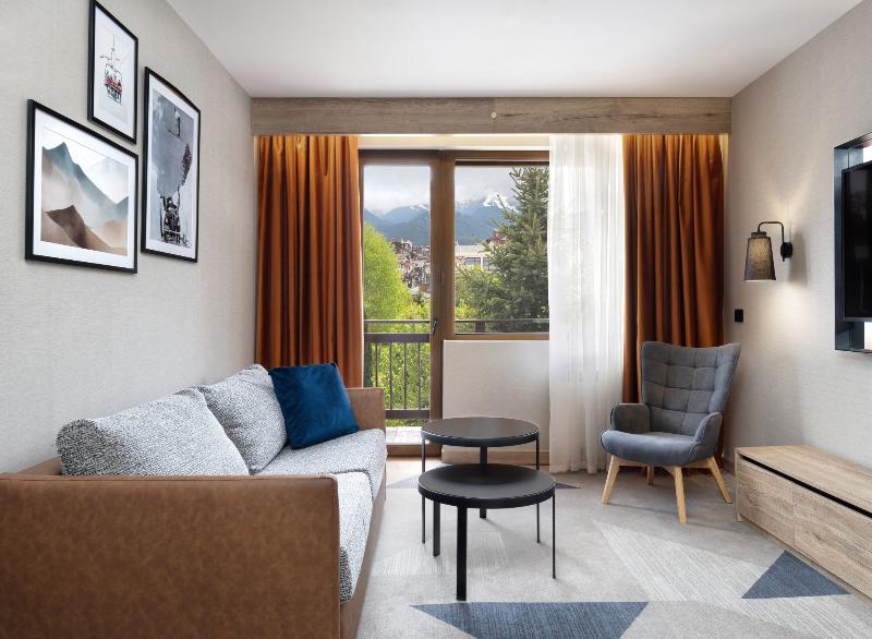 Este hotel familiar, situado a pocos pasos de la estación inferior del teleférico y junto a la pista de patinaje sobre hielo, ofrece un servicio de traslado gratuito a las pistas. El Strazhite Ski Hotel combina a la perfección la arquitectura tradicional búlgara con las comodidades modernas. Ubicado a tan solo 300 metros del teleférico de Bansko, está pensado para los esquiadores entusiastas que desean lanzarse a las pistas. El centro de Bansko, repleto de atracciones, restaurantes tradicionales, pubs, tiendas y numerosos museos, se encuentra a poca distancia a pie. Las estaciones de autobús y tren están a poco más de un kilómetro del hotel. Blagoevgrad está aproximadamente a una hora en coche, mientras que el aeropuerto de Plovdiv está a unos 200 km y el aeropuerto de Sofía a unos 170 km. El hotel ofrece 160 habitaciones cómodas y espaciosas, y recibe a sus huéspedes con recepción y servicio de salida 24 horas, caja fuerte, servicio de cambio de divisa, guardarropa y ascensor. Mejora tus vacaciones de invierno con servicios que incluyen una bolera de cuatro pistas, piscina, sala de juegos, cafetería, bar, restaurante y mucho más. También dispone de instalaciones para conferencias y aparcamiento. Los servicios de habitaciones y lavandería, así como el alquiler de bicicletas, se ofrecen por un suplemento. Las habitaciones dobles, elegantemente amuebladas, cuentan con baño privado con ducha y secador de pelo, y la mayoría incluyen balcón. Cada habitación está equipada con televisión por cable, teléfono de línea directa, minibar, calefacción central y la opción de una cama supletoria.