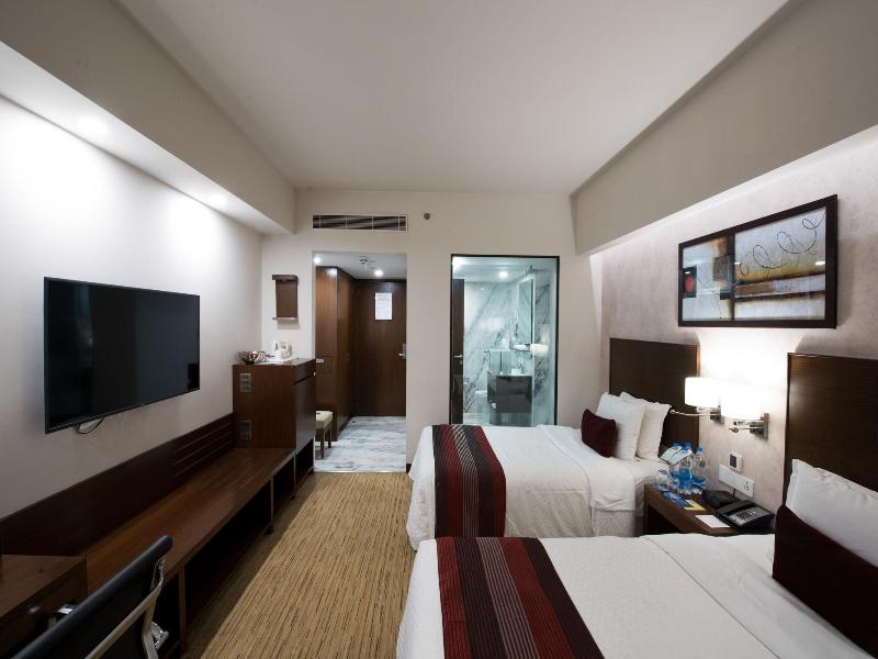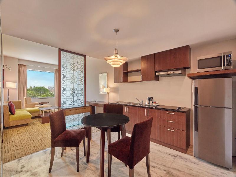 Ubicado en el corazón de Pune, el Four Points by Sheraton Hotel & Serviced Apartments se encuentra a poca distancia en coche de Phoenix Market City y del Palacio Aga Khan. Este hotel de lujo ofrece 217 habitaciones decoradas individualmente, equipadas con minibar, reproductor de DVD y camas con pillow-top. Disfruta de acceso a internet por cable e inalámbrico de cortesía, televisores LCD de 32 pulgadas y baños privados con artículos de tocador gratuitos y bidé. Aprovecha el servicio de habitaciones las 24 horas o disfruta del desayuno bufé diario (disponible por un suplemento). Las opciones recreativas incluyen una piscina al aire libre, baño de vapor y gimnasio abierto las 24 horas. Los servicios adicionales incluyen conserjería y organización de bodas, centro de negocios abierto las 24 horas y servicio de limusina/coche urbano. El hotel también cuenta con un amplio espacio para reuniones y conferencias. Hay un servicio de traslado de ida y vuelta al aeropuerto y de recogida en la estación de tren disponibles por un suplemento.