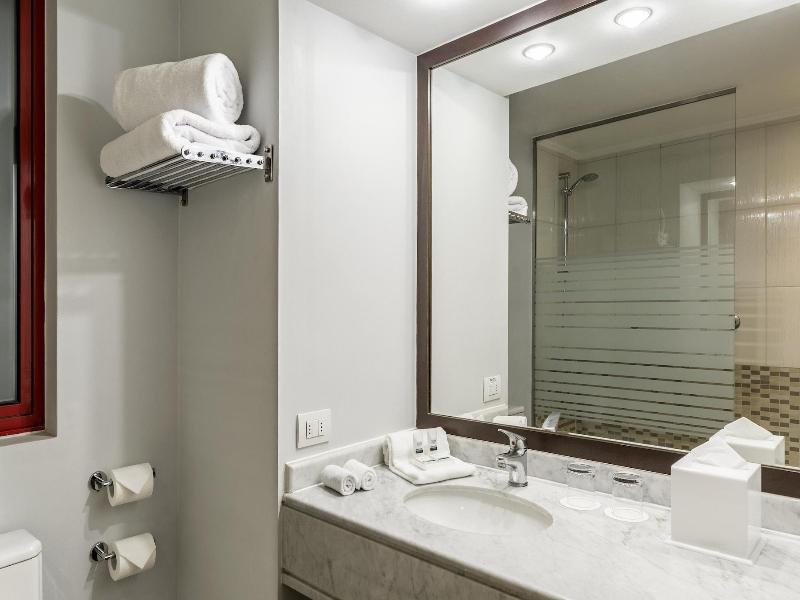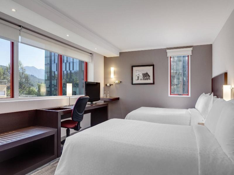 Ubicado en el corazón de Santiago, Four Points by Sheraton Santiago se encuentra a 5 minutos en auto del Costanera Center y la Clínica Santa María. Este hotel también está convenientemente situado a 5 km tanto de la Plaza de Armas de Santiago como del Museo Histórico Nacional. Disfruta de opciones recreativas como un gimnasio y una piscina al aire libre. Manténte conectado con acceso a internet inalámbrico y por cable de cortesía, y aprovecha los servicios de conserjería y el televisor en la zona común. Hay un servicio de transporte local disponible por un suplemento. Las 127 habitaciones del hotel cuentan con minibar, televisores LCD y baños privados con duchas tipo lluvia y artículos de tocador de cortesía. También incluyen teléfono, caja fuerte y escritorio. Saborea la cocina internacional en el Restaurante Buganvilia, uno de los dos restaurantes del hotel, o disfruta del servicio a la habitación con horario limitado. También hay un bar/lounge disponible. El desayuno buffet se sirve de lunes a viernes de 6:30 a 10:00 h y los fines de semana de 7:30 a 11:00 h por un cargo adicional. Para los viajeros de negocios, el hotel ofrece acceso a internet por cable de cortesía, un centro de negocios, periódicos gratuitos en el vestíbulo y cinco salas de reuniones.
