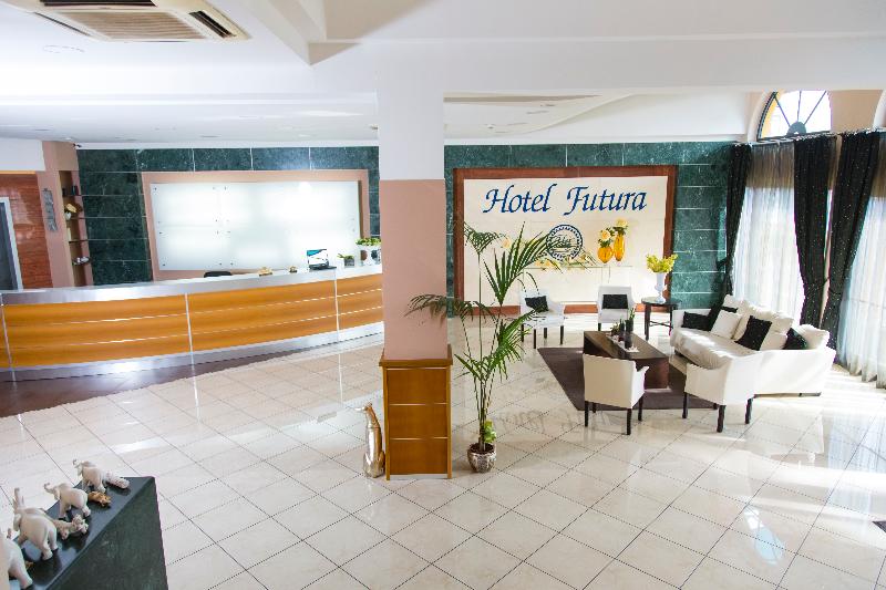 Alojarse a las puertas de la ciudad de Nápoles a dos pasos del aeropuerto, en una estructura de elite con una arquitectura moderna y refinada, única en la zona, es una ocasión que no se puede perder para quien desea, después de un día de trabajo o una excursión turística, relajarse en el confort de unas habitaciones donde todo ha sido estudiado para garantizar a nuestros clientes tranquilidad y bienestar. Todos estos particulares hacen que el Hotel Futura sea un hotel de charme que une tranquilidad y confort al alojamiento de nuestros huéspedes. La recepción esta situada en la planta baja del hotel Futura. Varios son los servicios a disposición de nuestros clientes, cuales: servicio taxi, informaciones turísticas, servicios fax y email, acceso internet, reservas de billetes de aviones y trenes.
