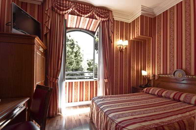 El hotel está en un prestigioso edificio.El vestíbulo es de tamaño medio y está amueblado en un estilo elegante y refinado. Está decorado en luminosos tonos pastel que contrastan con el mostrador de recepción de madera oscura. Las paredes están cubiertas por decoraciones de madera y los suelos son de mármol. Todo está iluminado por una bonita lámpara de cristal de murano. La zona de descanso respeta el estilo elegante del hotel y está equipada con butacas rojas y mesas de café de cristal.