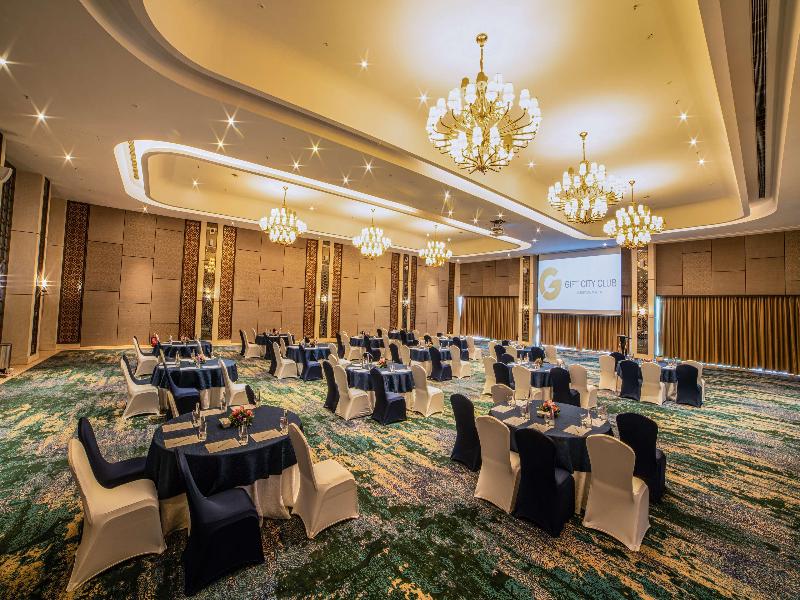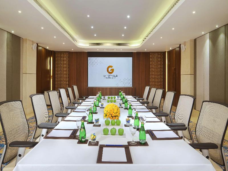 Ubicado en Gandhinagar, Gift City Club & Business Center se encuentra en el distrito financiero, a 1 minuto en coche de Gujarat International Finance Tec-City y a 10 minutos de Indroda Nature Park. Este hotel de 5 estrellas está a 14, 4 km de Ahmedabad Airport Road y a 24, 5 km de Manek Chowk. No te pierdas las numerosas oportunidades recreativas, que incluyen una piscina al aire libre, un baño de vapor y un gimnasio. Este hotel también ofrece acceso inalámbrico a internet de cortesía y servicios de conserjería. Entre los servicios destacados se incluyen un centro de negocios, periódicos gratuitos en el vestíbulo y servicio de tintorería/lavandería. ¿Estás planeando un evento en Gandhinagar? Este hotel dispone de 446 metros cuadrados de espacio que incluyen un centro de conferencias y una sala de reuniones. Los huéspedes pueden utilizar un servicio de recogida en la estación de tren por un suplemento, y hay aparcamiento gratuito con servicio de aparcacoches disponible en el establecimiento. Disfruta de una comida en el restaurante o de aperitivos en la cafetería. El hotel también ofrece servicio de habitaciones las 24 horas. Socializa con otros huéspedes en la recepción gratuita, que se celebra a diario. Termina tu día con una bebida en el bar junto a la piscina. El desayuno bufé está disponible todos los días de 7:00 a 10:00 por un suplemento. Siéntete como en casa en una de las 103 habitaciones con decoración individual, minibar y televisor LCD. Las habitaciones disponen de balcón privado. La conexión a internet por cable e inalámbrica gratuita te mantiene conectado y la programación por satélite proporciona entretenimiento. Los baños privados con ducha disponen de cabezal de ducha tipo lluvia y artículos de tocador gratuitos.