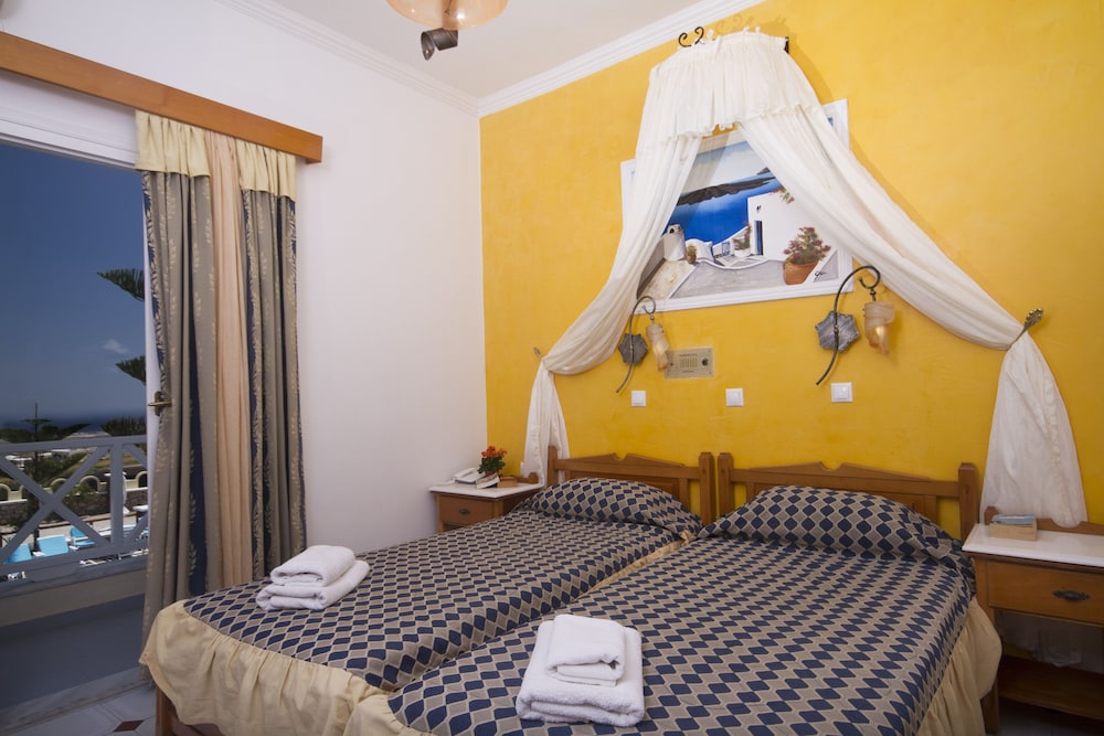 Si decides alojarte en Golden Star de Santorini, apenas te separarán cinco minutos en coche de Caldera de Santorini y Playa de Monolithos. Además, este hotel se encuentra a 8,1 km de Puerto de Athinios y a 9,1 km de Playa de Kamari.No te pierdas las instalaciones recreativas a tu disposición, que incluyen una piscina al aire libre y una bañera de hidromasaje.Tendrás un servicio de recepción las 24 horas, consigna de equipaje y una caja fuerte en recepción a tu disposición. Hay un aparcamiento sin asistencia gratuito disponible.Aprovecha el servicio de habitaciones con horario limitado de este hotel. Disfruta de tu bebida favorita en el bar o lounge o en el bar junto a la piscina. Se ofrece un desayuno bufé todos los días de 8:30 a 10:30 con un coste adicional.Te sentirás como en tu propia casa en cualquiera de las 20 habitaciones con aire acondicionado, frigorífico y televisión de pantalla plana. Mantén el contacto con los tuyos gracias a la conexión a Internet wifi gratis. Entre las comodidades, se incluyen caja fuerte, escritorio y la posibilidad de solicitar tabla de planchar con plancha.