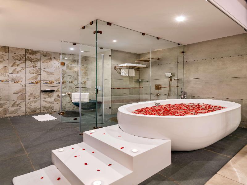 Este lujoso hotel se encuentra en Goa, a poca distancia de varias atracciones de la zona. Los huéspedes estarán a tan solo 800 metros de la cautivadora playa de Candolim. Este espléndido hotel presenta un estilo arquitectónico sofisticado que invita a los huéspedes a disfrutar del lujoso entorno interior. El interior goza de un diseño suntuoso, que combina el elegante estilo de Goa con influencias contemporáneas. Las habitaciones están decoradas con suma elegancia, reflejando el esplendor de la rica herencia del entorno. Los huéspedes pueden cenar con estilo en el encantador entorno del restaurante, donde se pueden degustar platos de la cocina india, asiática y continental. Ya sea que viajen por negocios o por placer, a los huéspedes les espera una estancia relajante en este hotel.
