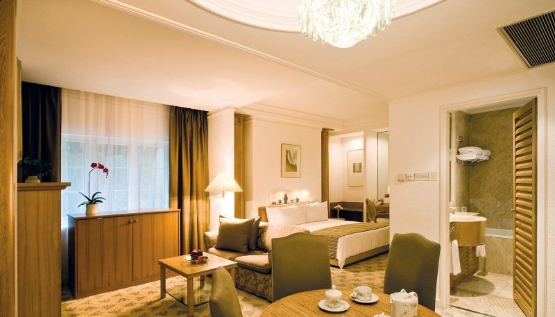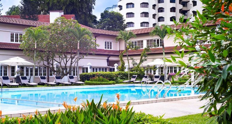 Este hotel, diseñado al gusto de la tradición arquitectónica europea y que ocupa un lugar privilegiado en Singapur, siendo un punto de referencia de la ciudad con su Grand Tower, nombrada monumento nacional en 1989, consta de 234 habitaciones y suites repartidas en 6 hectáreas, distribuidas en varios vestíbulos: la zona conocida como \"\"Mayfair\"\", la torre y el \"\"Parklane\"\". Cuenta con aire acondicionado e incluye conserjería, centro de negocios, peluquería, sastrería las 24 horas, varias salas para conferencias y reuniones, cambio de divisa, ascensor, asador, 2 restaurantes chinos, cafetería, bar, tienda de exquisiteces culinarias, conexión a Internet, servicio de habitaciones y lavandería de pago.
