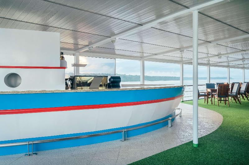 Este lujoso barco lleva a los huéspedes en un crucero magnífico e inolvidable por los ríos Negro y Amazonas. Ofrece toda la comodidad y los servicios que un viajero exigente busca. La aventura comienza en la ciudad de Manaus, capital de Amazonas, famosa por su espectacular Teatro Amazonas. Tras partir de Manaus, el barco hace paradas en diferentes lugares de la selva amazónica, ofreciendo excursiones en pequeños barcos para explorar la densa vegetación virgen. Los aventureros tendrán la oportunidad de ver plantas, árboles y animales autóctonos e incluso las comunidades ribereñas locales, formadas por gente extremadamente amable y hospitalaria. Esta experiencia en la selva tropical es ideal para quienes buscan aventura. Aquí, los huéspedes pueden disfrutar de un crucero de lujo a través del increíble Bosque del Amazonas. El barco ofrece momentos inolvidables de confort y aventura. Los 72 camarotes están distribuidos en 3 cubiertas diferentes: Mandi, Acará y Tambaqui, mientras que las 2 espaciosas suites reales se encuentran en la parte delantera del barco. Las instalaciones a disposición de los huéspedes a bordo incluyen un vestíbulo con servicio de cambio de divisas y ascensor. Hay 2 bares y 2 restaurantes, así como una sala de reuniones y acceso a internet. También se ofrece servicio de lavandería. Todas las suites y camarotes están equipados con baño privado, camas dobles/twin, balcón privado, TV, radio, teléfono, secador de pelo, aire acondicionado regulable individualmente y caja fuerte. El entretenimiento a bordo incluye clases de baile, clases de pesca y clases de ecología, en las que se enseña a los participantes sobre la flora y fauna autóctonas. Hay 2 piscinas exteriores y un gimnasio. Se ofrecen excursiones en lancha motora, que llevan a los huéspedes a través de los lagos locales de Igapos e Igarapés. Las actividades nocturnas incluyen música en vivo y fiestas temáticas.