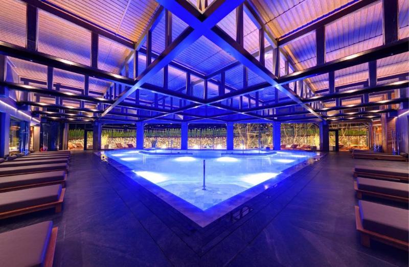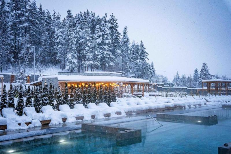El complejo SPA se abastece de agua mineral procedente de un manantial termal situado a 3 km del pueblo de Banya.