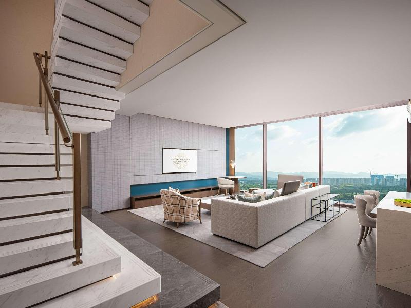 Este hotel de 35 000 m² ofrece un concepto de diseño inspirado en la belleza francesa clásica. El oro champán se utiliza para realzar el color turquesa y crear un ambiente urbano de lujo. Además, el hotel integra también la cultura de Sichuan y de Shu, combinando el estilo y la elegancia de Shu en la textura arquitectónica para aportar calidez y sencillez.
