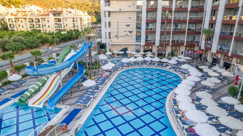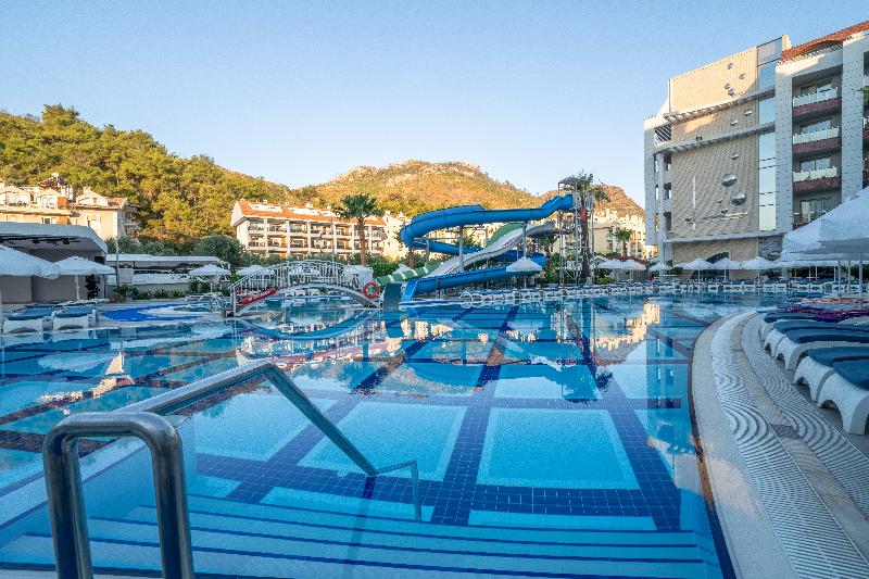 Este nuevo y lujoso resort en Marmaris está situado en un precioso terreno privado. Encontrarás restaurantes, bares y tiendas a 400 metros del establecimiento. El Aeropuerto de Dalaman está a aproximadamente 90 km. Este hotel con aire acondicionado ofrece un total de 280 habitaciones. Cada unidad, decorada con buen gusto, cuenta con baño privado y un balcón con vistas a la piscina y al jardín. Puedes relajarte en la sala de juegos y la sala de televisión o ir a bailar a la discoteca del hotel. La zona de baño incluye dos piscinas, un tobogán acuático y un bar junto a la piscina. También hay otras actividades deportivas y de ocio disponibles, así como un programa de entretenimiento 6 días a la semana. El resort ofrece paquetes con todo incluido.
