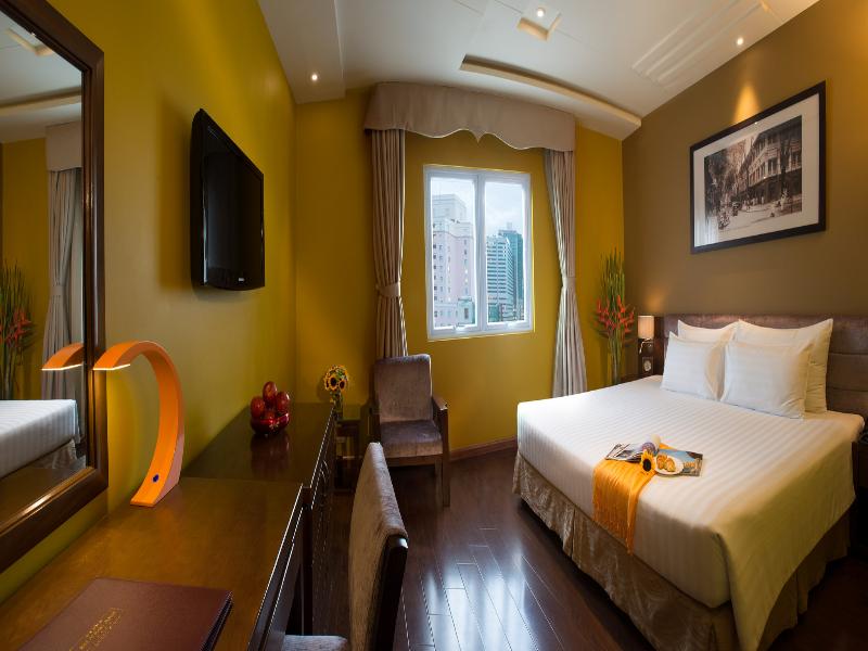 El magnífico Grand Silverland Hotel & Spa tiene una ubicación privilegiada en el distrito financiero de Ciudad Ho Chi Minh City, a solo un minuto a pie del mercado de Ben Thanh. A escasos metros hay lugares de interés como la Torre Sunwah, el edificio de la Ópera, el edificio Bitexco, el edificio Metropolitano, la Torre AB, la Catedral de Notre Dame, el Centro Saigon y la Torre Gemadept. El Aeropuerto Internacional está a unos 30 minutos en coche. El hotel ofrece habitaciones y suites en un elegante diseño intemporal lujosamente equipadas, son amplias y con excelentes características como WiFi gratuito, aire acondicionado y TV LCD. El hotel cuenta con una terraza en la azotea con piscina al aire libre y espléndidas vistas sobre la ciudad. Los huéspedes de negocios apreciarán el centro de negocios y las salas de reuniones. Los huéspedes pueden disfrutar de una vigorizante sesión de ejercicio en el gimnasio del piso 10. Una opción ideal para los viajeros de negocios y de placer.