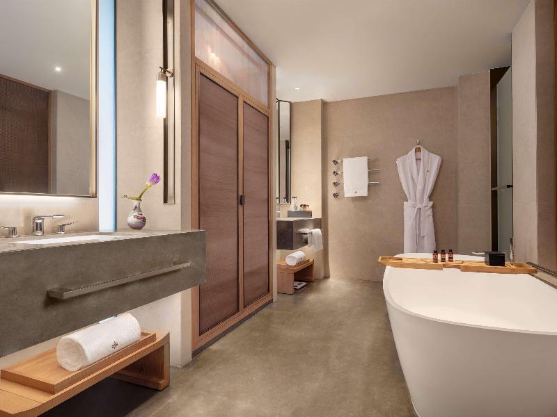 Ubicado en Nankín (Yu Hua Tai), el Grand WUJI Hotel, perteneciente a The Unbound Collection by Hyatt, se encuentra a 10 minutos en coche de la Puerta de China y del Templo de Confucio. Este hotel está a 9, 2 km del Museo Conmemorativo de la Masacre de Nankín y a 10, 4 km del Palacio Presidencial de Nankín. Disfrute de las instalaciones recreativas, que incluyen piscina cubierta, sauna y gimnasio. Este hotel también ofrece wifi gratuito, servicios de conserjería y una tienda de regalos. Tendrá a su disposición un centro de negocios, periódicos gratuitos en el vestíbulo y servicio de tintorería/lavandería. Hay aparcamiento gratuito disponible. Para comer, visite el restaurante 五味自助餐厅, especializado en cocina local e internacional. También puede tomar un refrigerio en la cafetería. El desayuno bufé se sirve entre semana de 6:30 a 10:00 y los fines de semana de 6:30 a 10:30, con un coste adicional. Siéntase como en casa en una de las 272 habitaciones con decoración individual, que incluyen minibar gratuito y televisor LCD. Su cama Select Comfort incluye edredones de plumas y ropa de cama de primera calidad. Se proporciona televisión por cable para su entretenimiento. El baño privado con bañera y ducha independientes está equipado con cabezal de ducha tipo lluvia y artículos de tocador de diseño.