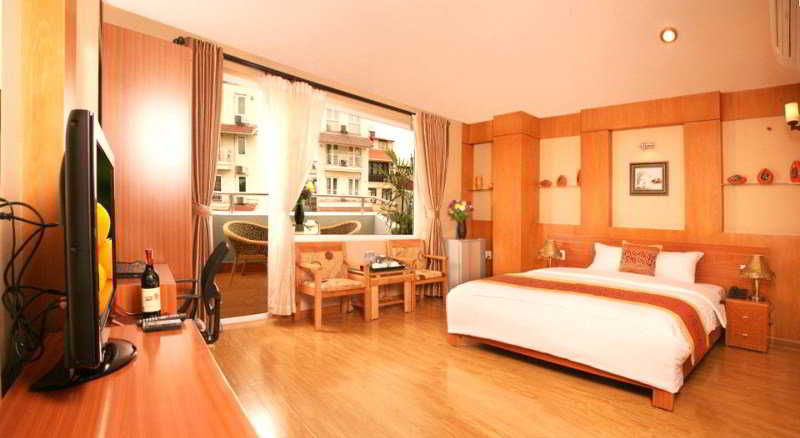 Este hotel se ubica en el corazón del ajetreado barrio antiguo de Hanói. Todos los conocidos lugares de interés de esta apasionante ciudad están justo a las puertas del hotel. Todo lo que los huéspedes puedan necesitar podrán encontrarlo en las cercanías, como tiendas, restaurantes y bancos. El lago Hoan Kiem y el afamado espectáculo de marionetas de agua son accesibles en cuestión de unos pocos minutos a pie. El río Rojo está a unos 500 m y el parque Lenin está a unos 1,8 km del hotel. El templo Ngoc Son está a unos 7 minutos a pie, así como el mercado de Dong Xuan. El complejo de Ho Chi Minh está a unos 15 minutos a pie del establecimiento.Se trata de un íntimo hotel de lujo tipo boutique de estilo oriental, con una magnífica decoración asiática y un total de 26 habitaciones distribuidas en 8 plantas. El hotel fue construido en 2011 y ofrece lujosos interiores tipo boutique, una hospitalidad personalizada y una incomparable relación calidad precio para huéspedes en viaje de negocios y de vacaciones. Su destacado servicio personalizado, el personal excepcionalmente amable, la suprema comodidad y la dedicación a la privacidad y hospitalidad, hacen de este hotel algo especial entre los hoteles tipo boutique de Hanói. Las instalaciones a disposición de los huéspedes en este encantador establecimiento climatizado incluyen vestíbulo con servicio de recepción y salida 24 horas, caja fuerte, servicio de cambio de divisas y ascensor para acceder a las plantas superiores. Hay cafetería, bar y restaurante en el establecimiento. Hay conexión a Internet WiFi disponible. Los huéspedes también pueden hacer uso del servicio de habitaciones, servicio de lavandería, aparcamiento y servicio de alquiler de bicicletas.