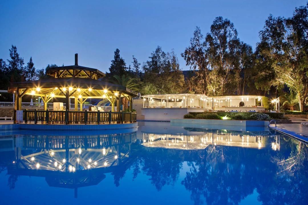 Este hotel de playa y spa fue renovado en 2009. Ofrece un ambiente adecuado para familias y cuenta con un total de 277 habitaciones, incluidas 5 suites. Dispone de una amplia y moderna zona de vestíbulo para dar la bienvenida a los huéspedes. El establecimiento consta de un edificio principal y un pequeño anejo, así como de un extenso terreno que ocupa un área de 60.000 m². Las instalaciones a disposición de los huéspedes en este hotel climatizado incluyen zona de vestíbulo con servicio de salida y recepción 24 horas, caja fuerte, servicio de cambio de divisas y ascensor. También hay un quiosco de prensa, un salón de peluquería, un auditorio, una sala de juegos y una sala de TV. Los más pequeños pueden disfrutar del parque y club infantiles. Se pueden adquirir refrescos en la cafetería, el bar, el pub y el restaurante del recinto, y hay una discoteca para que los huéspedes puedan prolongar el entretenimiento. Además, hay instalaciones para conferencias, servicio de habitaciones y de lavandería (los dos últimos, de pago). Por último, hay un aparcamiento y garaje cubierto para los huéspedes que lleguen en coche y se pueden alquilar bicicletas en el recinto (por un suplemento).
