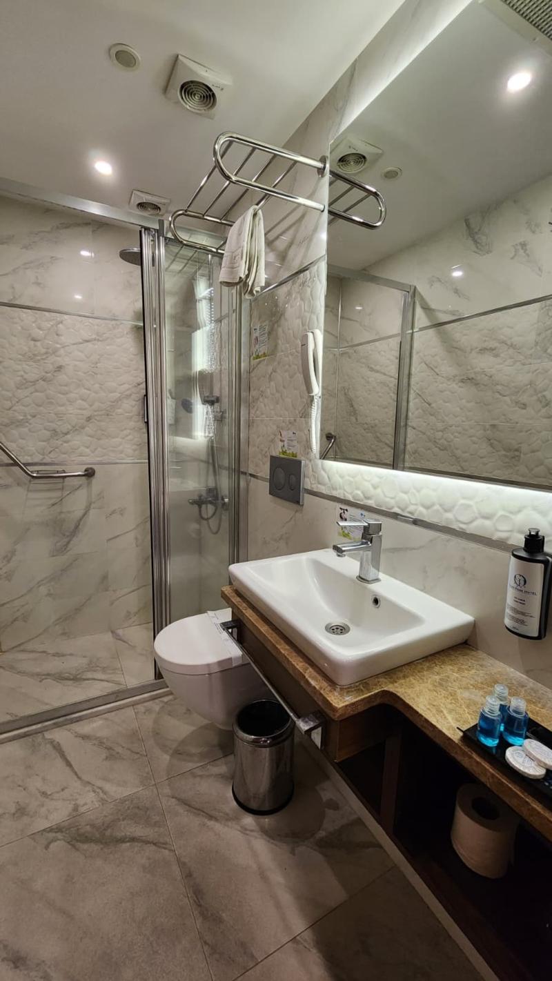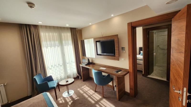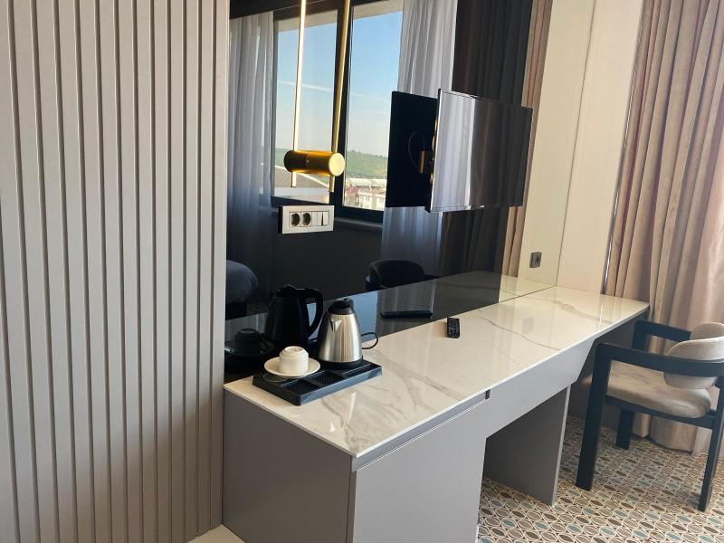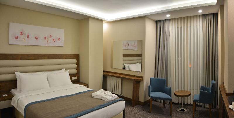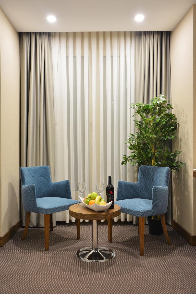 Alójate en el Guler Park Hotel y estarás en una ubicación céntrica en Bursa, a 15 minutos en coche de la Universidad de Uludağ y del Ninova Aquapark. Este hotel de 4 estrellas está a 11, 5 km de la Zona Industrial Organizada de Bursa y a 13, 1 km de Konak Kultur Evi. No te pierdas las oportunidades recreativas que incluyen un sauna y un gimnasio. Otros servicios de este hotel incluyen wifi gratis, servicios de conserjería y tiendas de regalos o quiosco. Puedes desplazarte a los destinos cercanos en el servicio de transporte de la zona (de pago). Tendrás a tu disposición un centro de negocios, periódicos gratuitos en el vestíbulo y servicio de tintorería/lavandería. Se ofrece servicio de transporte al aeropuerto (ida y vuelta) de pago (disponible las 24 horas) y aparcamiento con asistencia gratuito en las instalaciones. Disfruta de la cocina turca en Efe Restaurant, uno de los 2 restaurantes de este hotel, o pide algo por el servicio de habitaciones las 24 horas. Termina tu día con una bebida en el bar o lounge. Se sirve un desayuno bufé todos los días con un coste adicional. Siéntete como en casa en una de las 75 habitaciones con aire acondicionado, minibar y televisor de pantalla plana. La conexión a Internet wifi gratis te mantendrá en contacto con los tuyos; también podrás ver la programación por satélite. El baño privado con bañera o ducha está provisto de artículos de higiene personal gratuitos y secadores de pelo. Entre las comodidades, se incluyen teléfono, caja fuerte y escritorio.