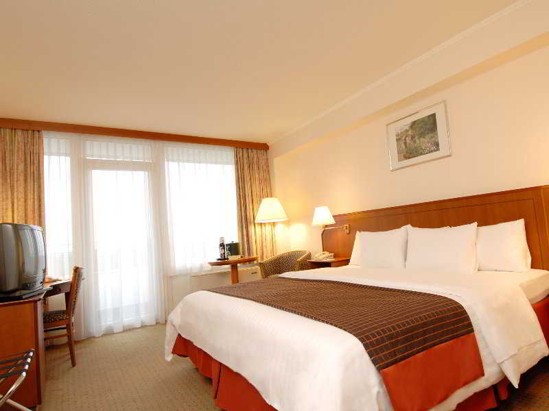 Rodeado de un frondoso bosque, el moderno Ramada Hotel Frankfurt Messe está estratégicamente situado en la ciudad de Frankfurt, a pocos minutos de las autopistas A5 y A648. Se puede llegar al recinto ferial internacional, al distrito financiero y al de negocios, así como el centro de la ciudad en un corto trayecto en coche. El aeropuerto internacional está a sólo unos minutos en coche. Este hotel de negocios ofrece habitaciones elegantes y bien equipadas con Wi-Fi gratuito, aire acondicionado, escritorio y un balcón. Los huéspedes de negocios apreciarán el centro de negocios que hay abierto las 24 horas y las instalaciones para conferencias. Después de un largo día de trabajo o haciendo turismo, los huéspedes pueden disfrutar de una vigorizante sesión de ejercicio en el gimnasio en el piso número 12, con sauna y piscina cubierta climatizada, además de maravillosas vistas al horizonte de Frankfurt. Para mayor comodidad, hay un servicio de transporte al aeropuerto y un restaurante que sirve cocina europea. Un hotel ideal para viajeros de negocios.